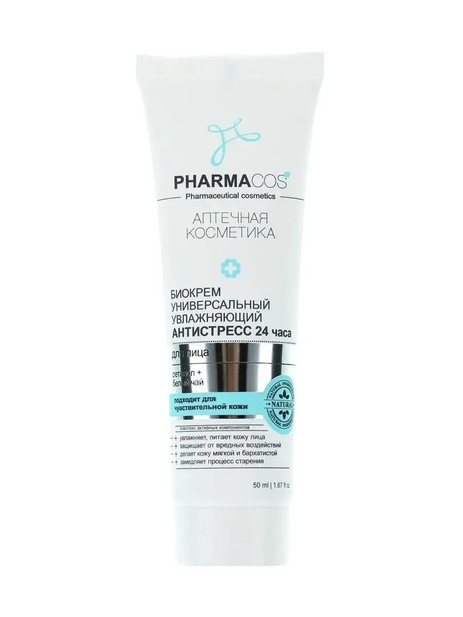 Биокрем универсальный увлажняющий Антистресс 24 часа для лица «PHARMACOS» от белорусского бренда Витекс — это идеальное средство для ухода за кожей лица, которое сочетает в себе увлажняющие и антивозрастные свойства. Уходовая косметика для лица создана для всех типов кожи и обеспечивает глубокое увлажнение и питание, придавая коже упругость и здоровый вид. Благодаря уникальным активным компонентам крем для лица увлажняющий бережно ухаживает за кожей, восполняет потерю влаги, делая кожу мягкой и бархатистой. Уход за лицом имеет легкую текстуру, равномерно распределяется по поверхности кожи и быстро впитывается, оставляя после себя комфортное ощущение мягкости и свежести на протяжении 24 часов. Увлажняющий крем для лица обладает легкой текстурой, которая быстро впитывается, не оставляя жирной пленки. Крем для лица от морщин содержит высококачественные компоненты, такие как масло косточек персика и экстракты моринги и водорослей, которые способствуют восстановлению и защите кожи от негативных факторов окружающей среды. Питательный крем для лица также включает в себя гиалуронат натрия, который обеспечивает интенсивное увлажнение и помогает разгладить морщины. Ретинол в составе крема способствуют антивозрастному уходу, улучшая текстуру кожи и уменьшая видимость признаков старения. Увлажняющий крем для лица, который обеспечивает 24-часовую защиту от потери влаги. Антивозрастной эффект, который помогает сократить количество морщин. Крем с ретинолом для лица, который восстанавливает упругость и эластичность кожи. Идеален для ежедневного ухода за лицом, подходит для всех типов кожи. Белорусская косметика «PHARMACOS» — многофункциональная система аптечных средств по уходу за кожей лица. Используйте биокрем от Vitex для полноценного ухода за кожей и наслаждайтесь ощущением свежести и комфорта на протяжении всего дня!