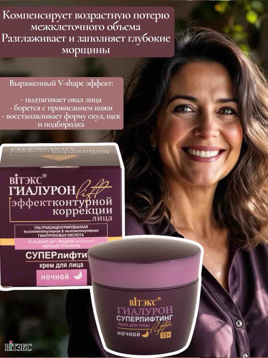 55+ КРЕМ НОЧНОЙ для лица суперлифтинг, 45мл, Выраженный V-shape эффект:
