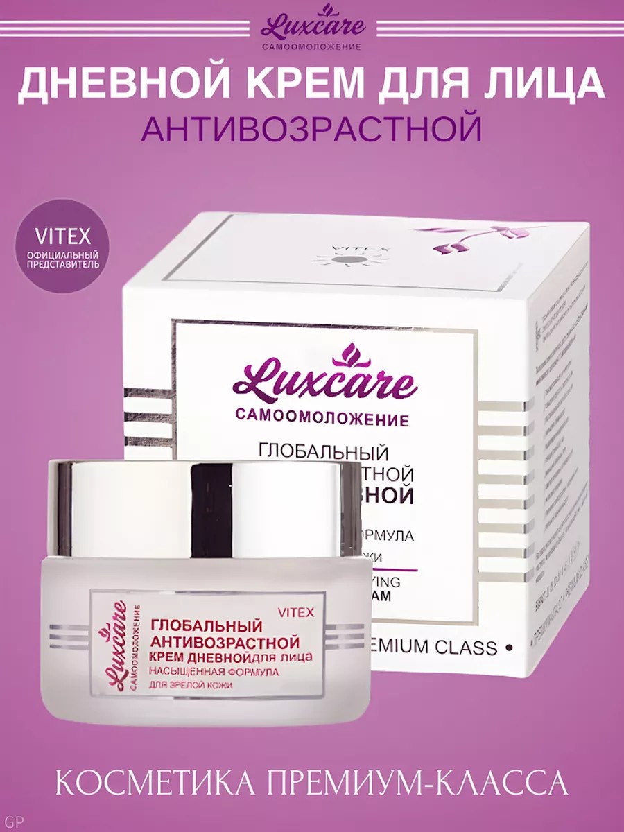 Global anti-aging day face cream, rich formula, for mature skin LuxCare Vitex Premium Cosmetics.