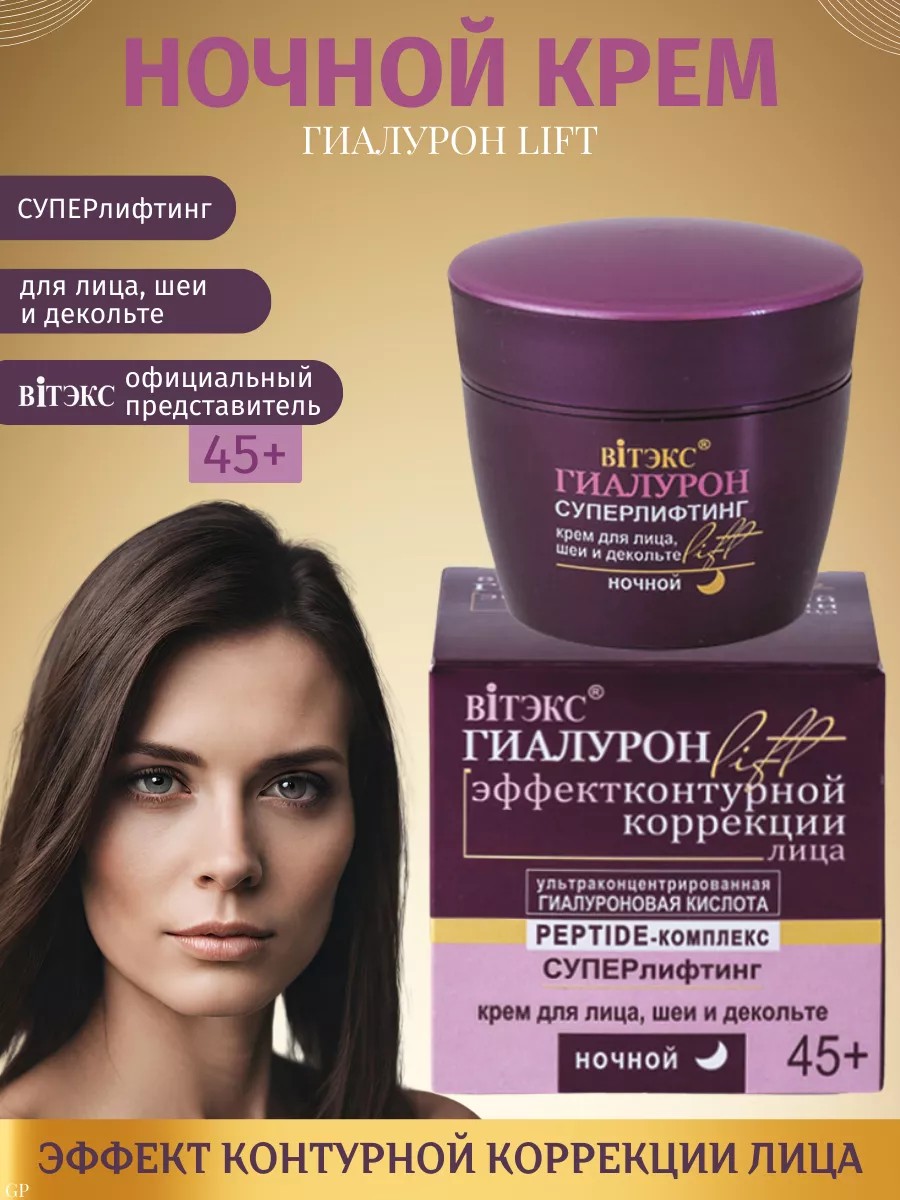 Суперлифтинг крем для лица, шеи и декольте ночной - ультраконцентрированная гиалуроновая кислота и Peptide-комплекс от белорусского бренда косметики Витэкс: