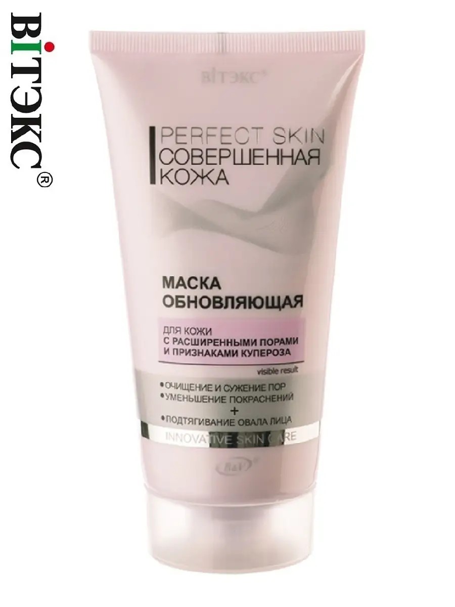 The Perfect Skin renewing mask is designed for skin with enlarged pores and signs of rosacea. Thanks to its active formula with white and red clay, it deeply cleanses pores, evens out skin texture, and makes it smoother and more radiant. The effect of a tightened facial contour, reduced redness, and strengthened capillaries has been proven by Codif and BASF. Recommended for use from the age of 25. Apply the mask for 10-15 minutes, avoiding the eye area, then rinse and enjoy fresh, radiant skin. The mask contains hydrogenated polydecene, glycerin, sodium hyaluronate, centella and calendula extracts, and avocado oil. Shelf life: 36 months. Made in Belarus. Facial care products play an important role in maintaining the health and beauty of the skin. The Perfect Skin cleansing face mask is the ideal solution for those seeking an effective remedy for skin problems. Not only does it deeply cleanse pores, but it also combats signs of rosacea, leaving skin smoother and more radiant. This acne-fighting face mask is ideal for oily skin, as it helps regulate sebum production, preventing new breakouts. Use this facial treatment regularly to keep your skin in perfect condition and enjoy its natural beauty every day.