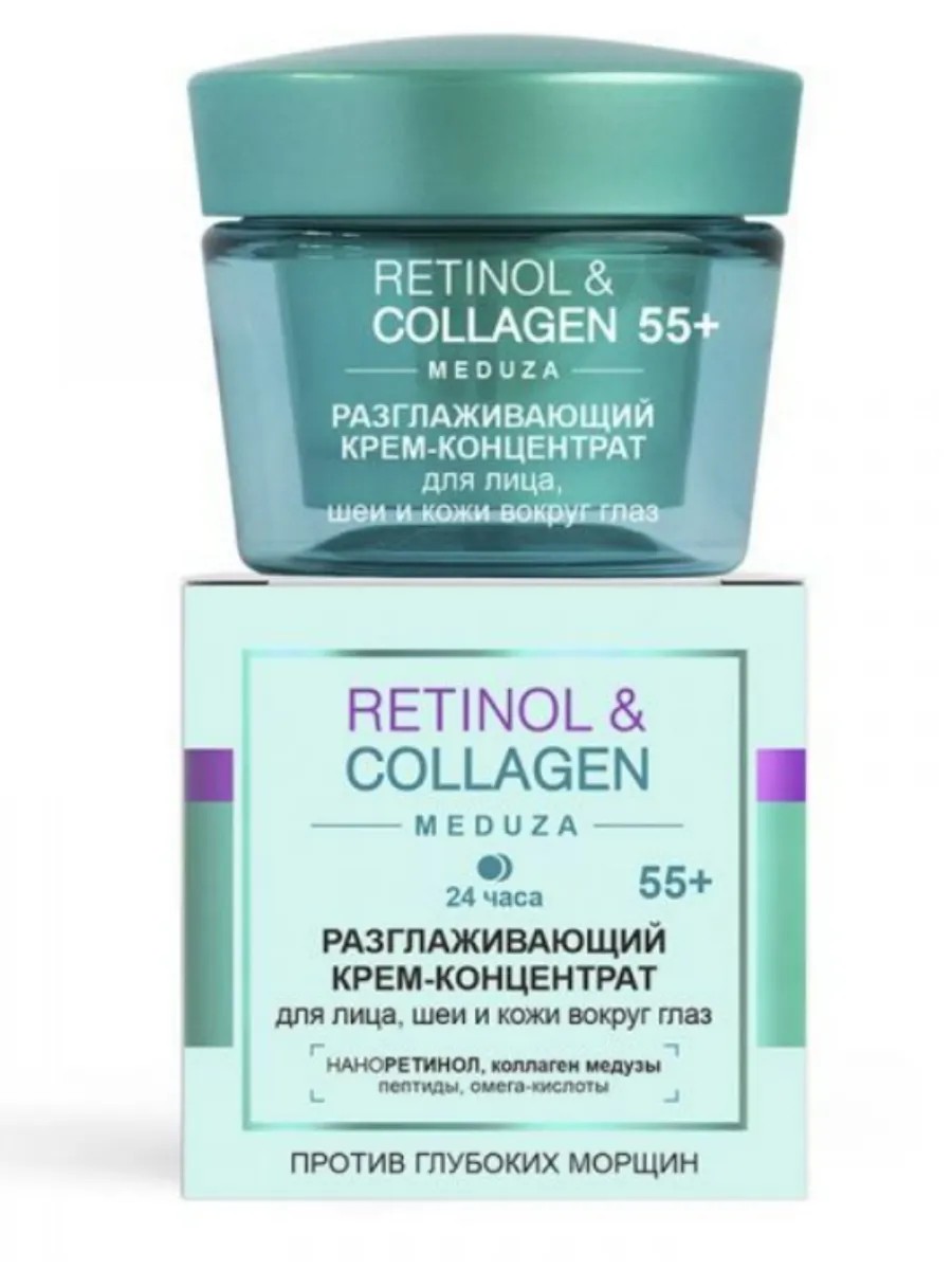 Разглаживающий крем-концентрат 24 ч для лица, шеи и кожи вокруг глаз 55+ Витекс RETINOL&COLLAGEN meduza, 45 мл.