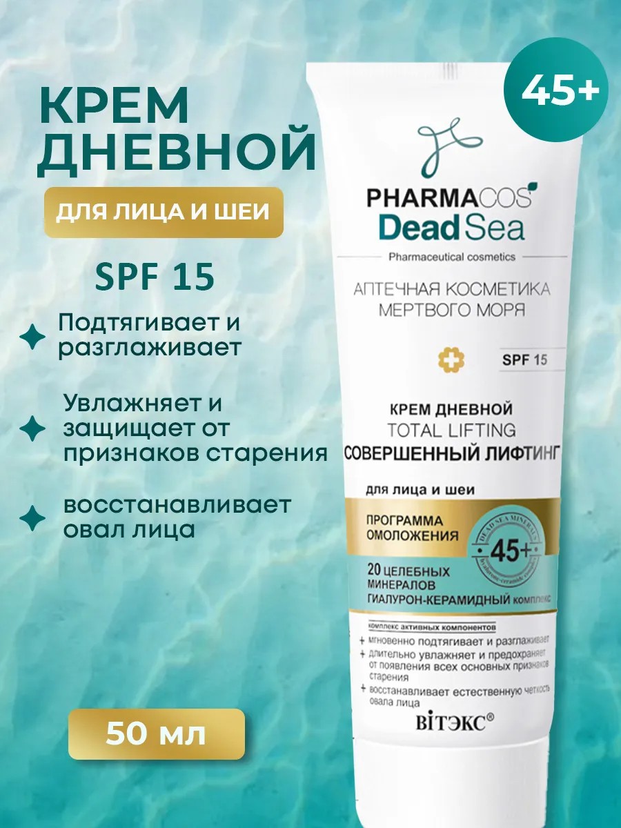 Дневной крем для лица и шеи 45+, SPF 15 «Total Lifting» от белорусского бренда Витекс — это идеальный антивозрастной уход, созданный для женщин, стремящихся сохранить молодость и свежесть своей кожи. Увлажняющий крем для лица антивозрастной эффективно борется с морщинами, обеспечивая глубокое увлажнение и питание. Уходовая косметика для лица уход включает в себя гиалуронат натрия, который активно увлажняет кожу, а также экстракты цикория и морского винограда, способствующие восстановлению и улучшению текстуры кожи. Благодаря содержанию церамидов и масла семян макадамии, крем для лица увлажняющий и питательный, обеспечивая защиту и восстановление барьерных функций кожи. Уход за лицом с 20 целебными минералами Мертвого моря улучшают микрометаболизм и восстанавливают здоровый баланс в коже, активизируют самообновление, противодействуют потере липидов и влаги. Морской виноград – высокоактивный антиоксидант – нейтрализует действие свободных радикалов, способствует выведению токсинов, защищает от негативного воздействия окружающей среды. Белорусская косметика спф для лица обладает сильным увлажняющим действием, способствует разглаживанию морщин. Дневной крем для лица с СПФ 15 не только защищает от вредного воздействия UV-лучей, но и служит отличной основой под макияж. Крем для лица от морщин с легкой и быстро впитывается, не оставляя жирного блеска, что делает его идеальным выбором для ежедневного использования. Антивозрастной уход с использованием омолаживающего крема Pharmacos Dead Sea поможет вам вернуть коже упругость и сияние, а также заметно уменьшить видимость морщин. Уход за кожей лица с «Total Lifting» от белорусской косметики Vitex станет вашим секретом красоты и уверенности в любом возрасте.