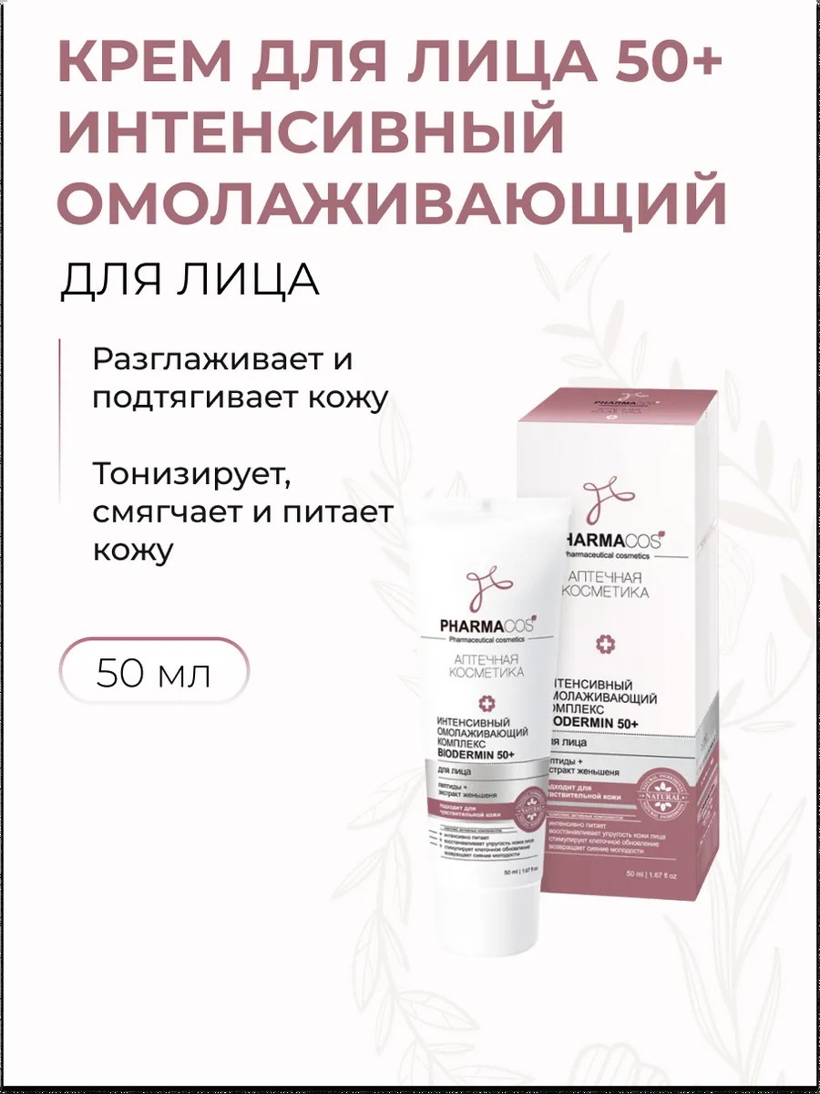 | Полное наименование товара | Крем для лица 50+ Интенсивный омолаживающий комплекс, Biodermin, Pharmacos, 50 мл |