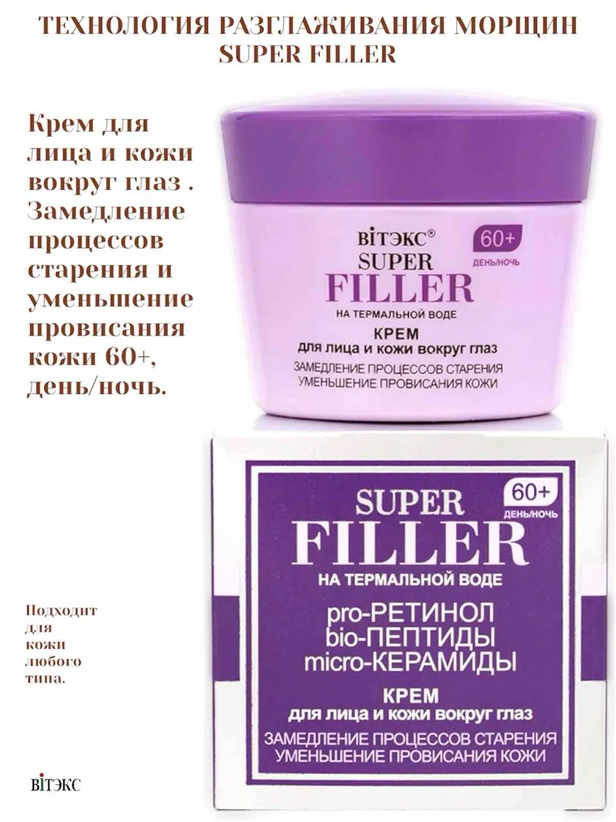 Крем для лица "Super Filler" от Витэкс - это интенсивный уход, разработанный специально для зрелой кожи 60+. Формула крема обогащена активными компонентами, которые эффективно борются с признаками старения, такими как морщины, дряблость и потеря упругости. Регулярное применение крема способствует разглаживанию морщин, повышению эластичности кожи и восстановлению ее естественного сияния. Легкая текстура крема быстро впитывается, не оставляя жирной пленки, и дарит коже ощущение комфорта и свежести на протяжении всего дня. Технология разглаживания морщин SUPER FILLER: