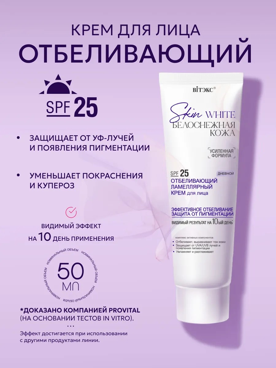 Give your skin a flawless look with Skin White face cream from the Belarusian brand Vitex, specially designed to combat pigmentation and improve the overall condition of the skin.