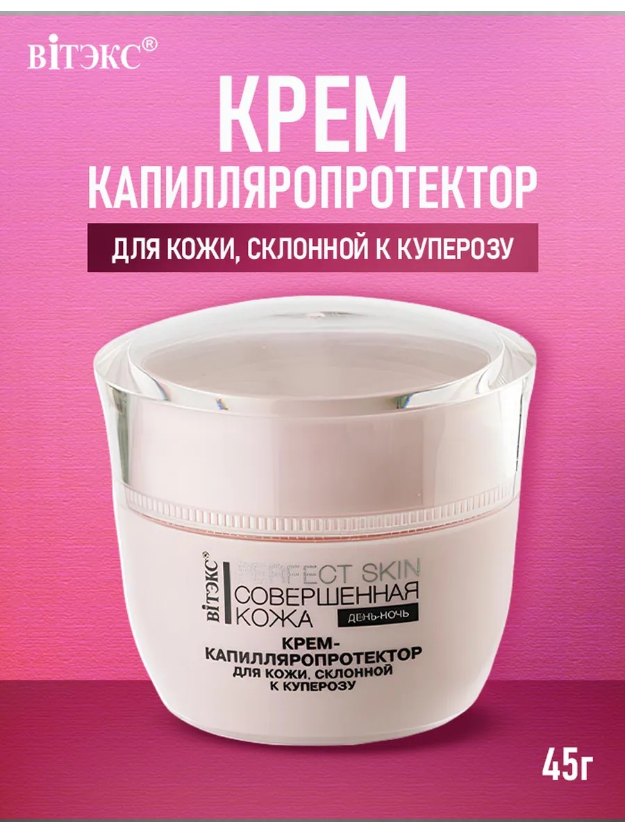 Крем для лица увлажняющий PERFECT SKIN от белорусского бренда Витекс — это специально разработанное средство для ухода за чувствительной и проблемной кожей, склонной к куперозу. Увлажняющий крем для лица, подходящий для всех типов кожи, оказывает комплексное действие, направленное на увлажнение, восстановление и борьбу с несовершенствами кожи. Формула крема обогащена центеллой азиатской, экстрактом рускуса и пантенолом, которые эффективно снимают покраснения и укрепляют стенки капилляров, уменьшая видимость сосудистой сетки. Крем-капилляропротектор для кожи, склонной к куперозу PERFECT SKIN интенсивно увлажняет кожу, делая ее мягкой и эластичной, а также защищает от негативного воздействия окружающей среды. Его легкая текстура быстро впитывается, не оставляя жирной пленки, что делает его идеальным для дневного и ночного использования. Регулярное применение крема от Vitex поможет вам добиться ровного тона лица, улучшить его текстуру и придать коже здоровое сияние.