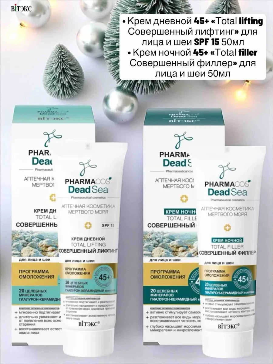 КомплектацияКрем дневной 45+ «Тotal lifting Совершенный лифтинг» для лица и шеи SPF 15 50 мл; Крем ночной 45+ «Тotal filler Совершенный филлер» для лица и шеи 50 мл