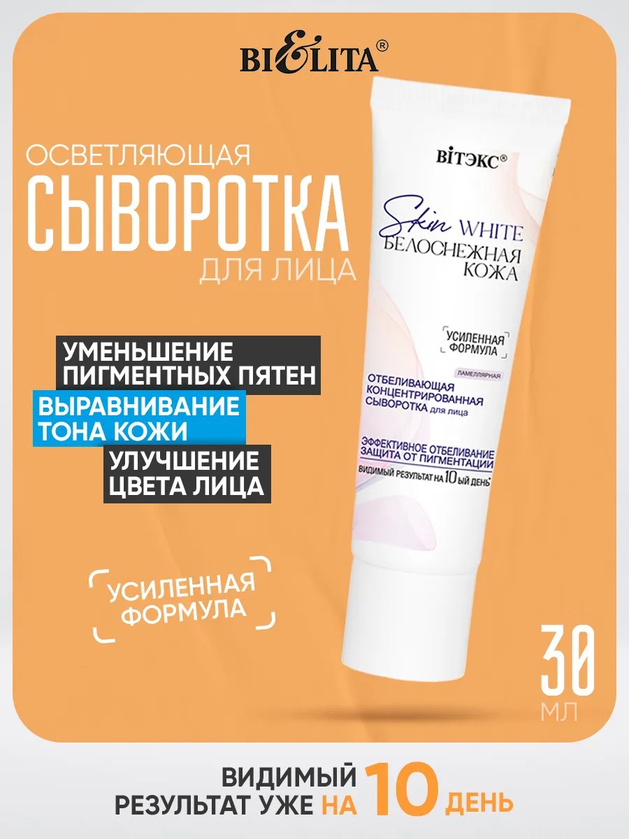Эта концентрированная сыворотка — настоящая находка для тех, кто хочет бороться с пигментацией и выравнивать тон кожи. Благодаря высокоактивному комплексу Premium White (Melаvoid) она проявляет мощное отбеливающее действие на различные виды пигментации, включая возрастные пятна, веснушки и следы после акне. Вы заметите первые результаты уже через 10 дней использования.