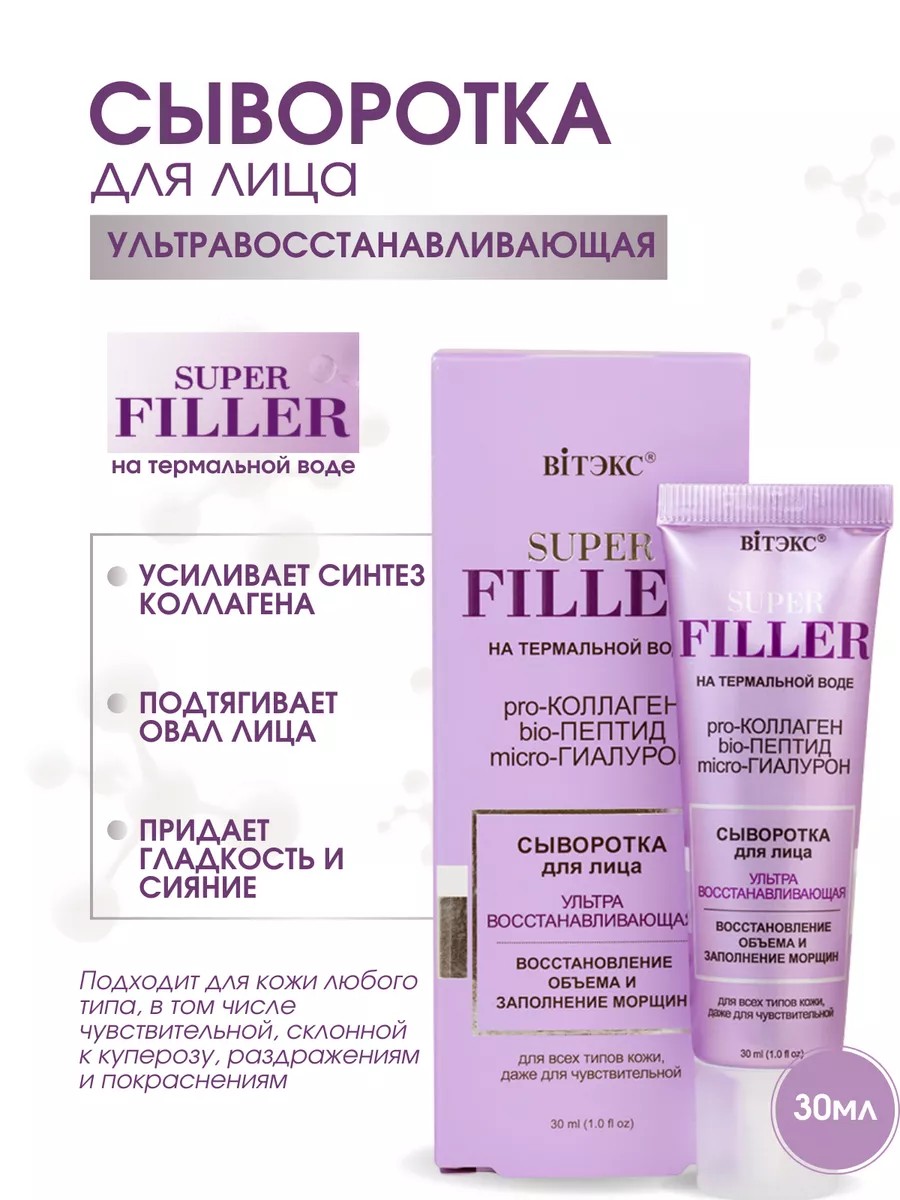 | Комплектация | SUPER FILLER на термальной воде Сыворотка для лица Ультравосстанавливающая |