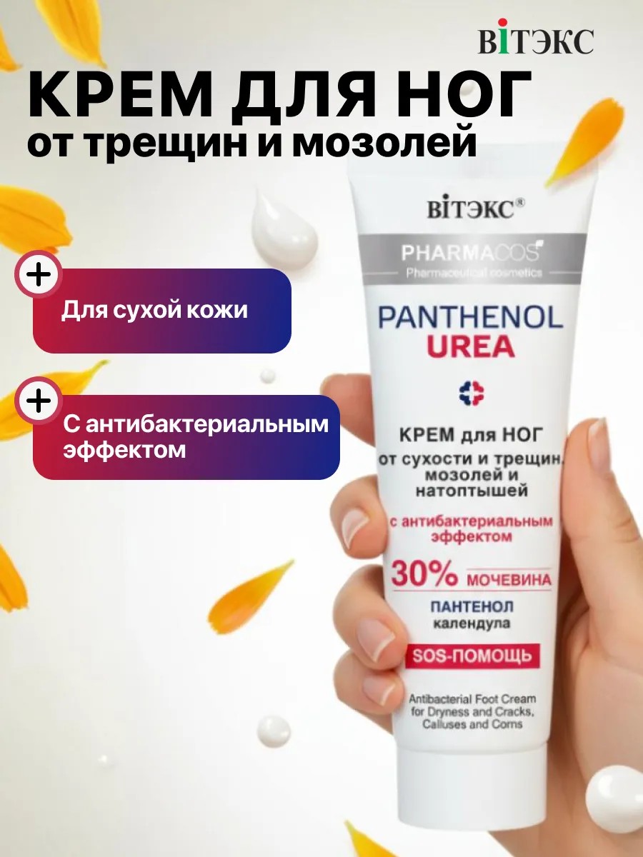 Vitex PHARMACos presents an effective foot care product, specially designed to eliminate dryness, cracks, calluses, and corns. The formula with 30% urea deeply moisturizes and softens rough skin, preventing excessive keratinization and protecting against new damage.
