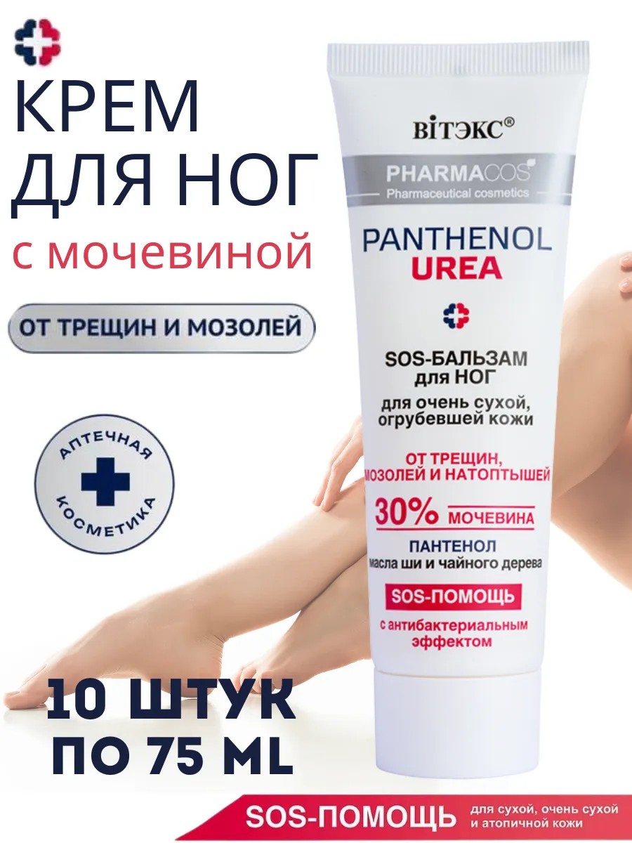 Крем для ног Pantenol Urea бренда Белита для очень сухой, огрубевшей кожи от трещин, мозолей и натоптышей с антибактериальным эффектом и мочевиной 30% - 10шт.