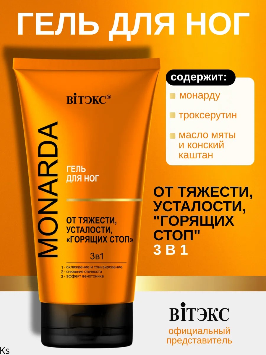 Гель для ног от тяжести, усталости, горящих стоп 3в1 c троксерутином, целебным экстрактом монарды MONARDA.