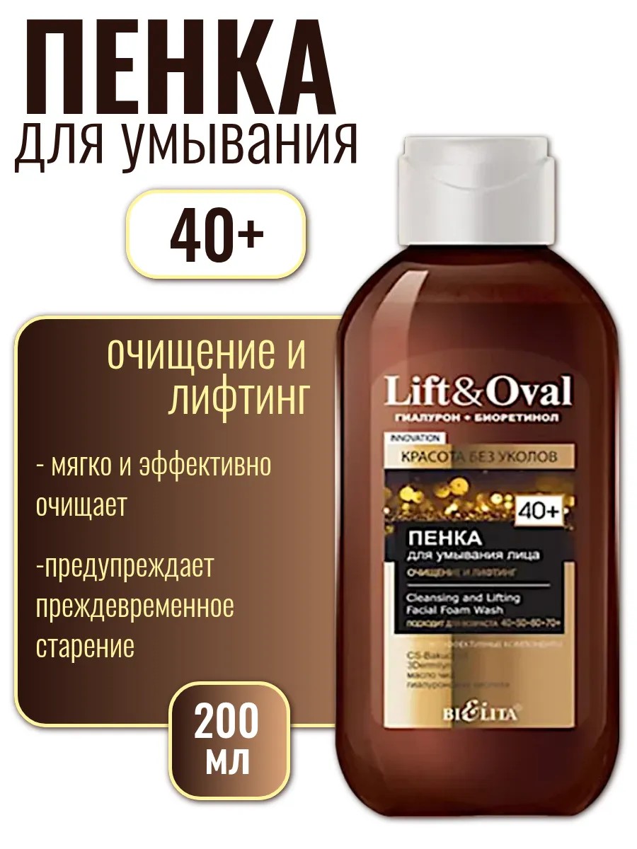 Белита Lift&Oval Пенка для умывания 200мл Очищение и лифтинг 40+. Нежная пенка для ежедневного умывания тщательно очищает кожу от загрязнений, не нарушая естественный защитный барьер.