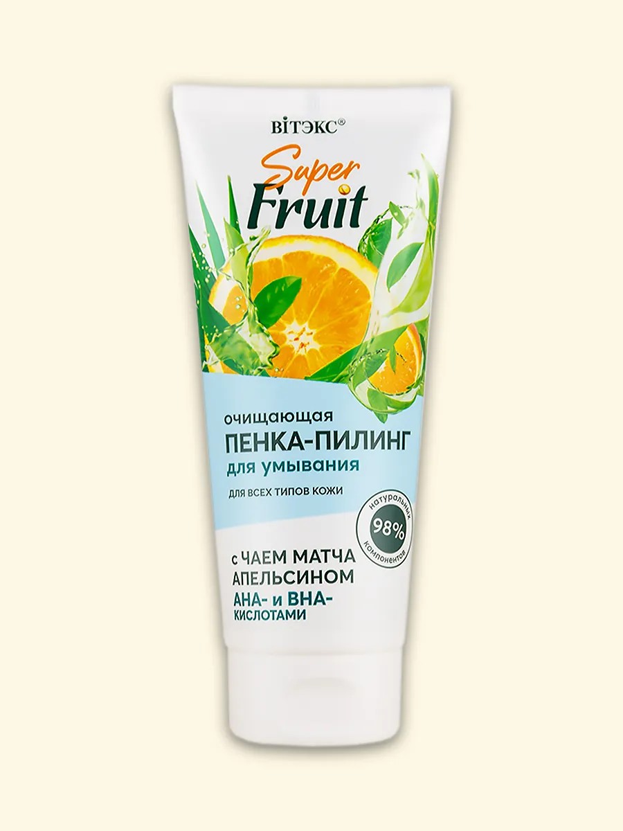 Пенка-пилинг сочетает в себе 2 вида очищения: Минеральные частицы и AHA+BHA-кислоты глубоко очищают поры, полируют и осветляют кожу, не травмируя и не пересушивая. Комплекс с чаем матча, апельсином и фруктовым миксом из чиа, золотого апельсина, арбуза, зизифуса, кале, моринги, сезама, индийского граната и цитруса сацума превосходно оздоравливает, увлажняет и тонизирует кожу, выравнивает цвет лица. Экологичная формула на 98 % состоит из компонентов натурального происхождения. Оставшиеся 2 % компонентов необходимы для создания комфортной текстуры, стабилизации формулы и сохранения качества на протяжении всего срока годности.