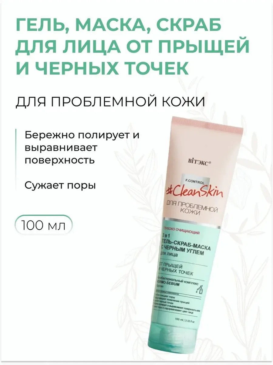 | Полное наименование товара | Гель, маска, скраб для лица от прыщей и черных точек для проблемной кожи, Clean Skin, 100 мл |