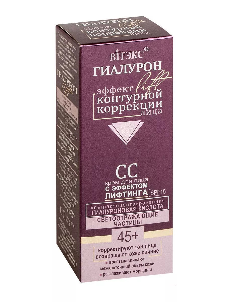 Corrects skin tone, restores radiance, restores intercellular volume, and smoothes wrinkles. CC face cream with a lifting effect is a multifunctional product that instantly corrects complexion and tightens skin, smoothing fine lines and wrinkles. Active ingredients: ultra-concentrated hyaluronic acid, light-reflecting particles, Renaissance peptide complex, and SPF 15. Directions: Apply to cleansed skin. Use alone or over day cream. Suitable for all skin types.