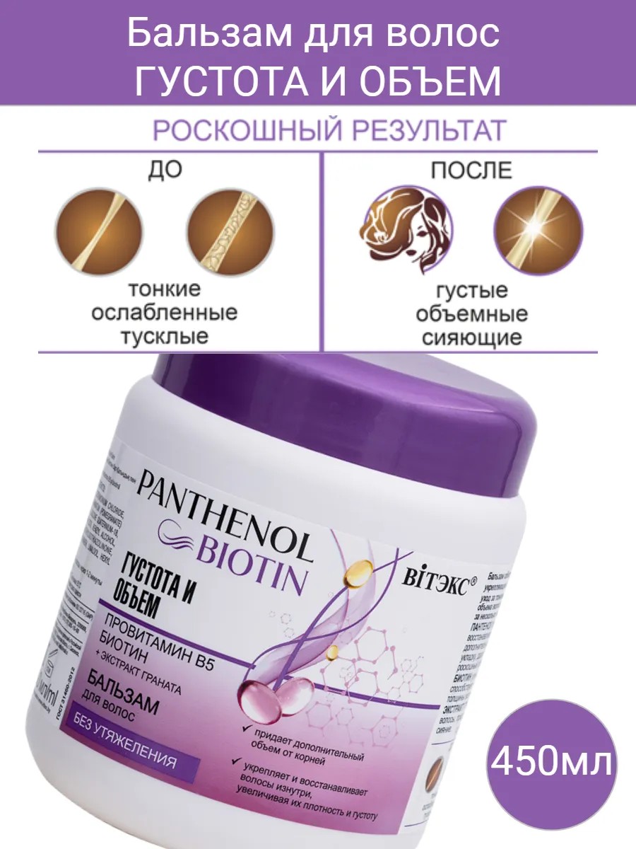 Витекс Бальзам для волос ГУСТОТА И ОБЪЕМ провитамин В5, БИОТИН, 450