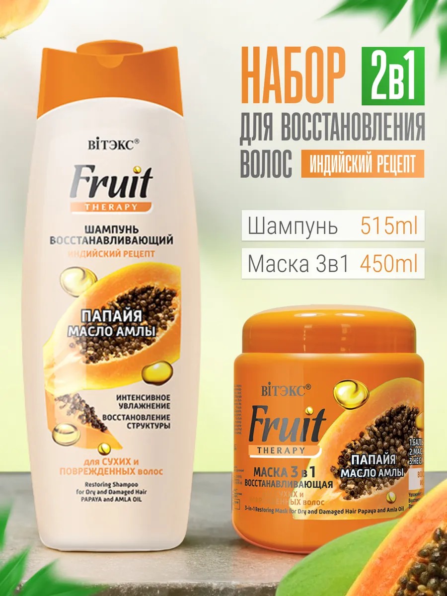 | Full product name | Restorative shampoo and mask set for dry and damaged hair "papaya, amla oil" |
