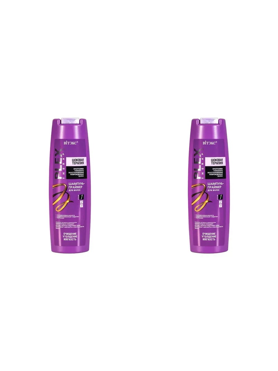 Шампунь для волос Витэкс Plex Therapy Шоковая Терапия праймер 400 мл. Комплекс активных компонентов: превосходно очищает; делает волосы ощутимо гуще; усиливает мягкость и послушность волос. Уже с этапа очищения начинается процесс восстановления волос. Шампунь-праймер глубоко очищает волосы. Активные компоненты придают волосам удивительную мягкость и гладкость, создавая эффект струящегося шелка. Даже поврежденные волосы наполняются силой, становятся более плотными, прочными и послушными. Шампунь-праймер - первый этап программы Plex therapy. Специальная формула шампуня усиливает эффективность сыворотки и маски линии "Шоковая терапия", способствуя проникновению активных компонентов в самые глубокие слои волоса. В комплекте 2 штуки.