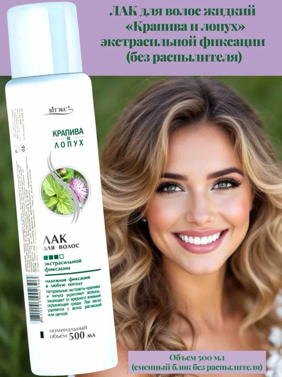 Лак для волос жидкий "Крапива и Лопух" от Витэкс – это идеальное решение для фиксации прически и ухода за волосами. Формула лака обогащена экстрактами крапивы и лопуха, известными своими укрепляющими и питательными свойствами. Лак обеспечивает надежную фиксацию в течение дня, при этом не склеивая волосы и не создавая эффекта "шлема". Он придаст волосам блеск, мягкость и здоровый вид. Подходит для всех типов волос. Применение: 1.Для фиксации прически: распылять на сухие уложенные волосы с расстояния 30-35см.