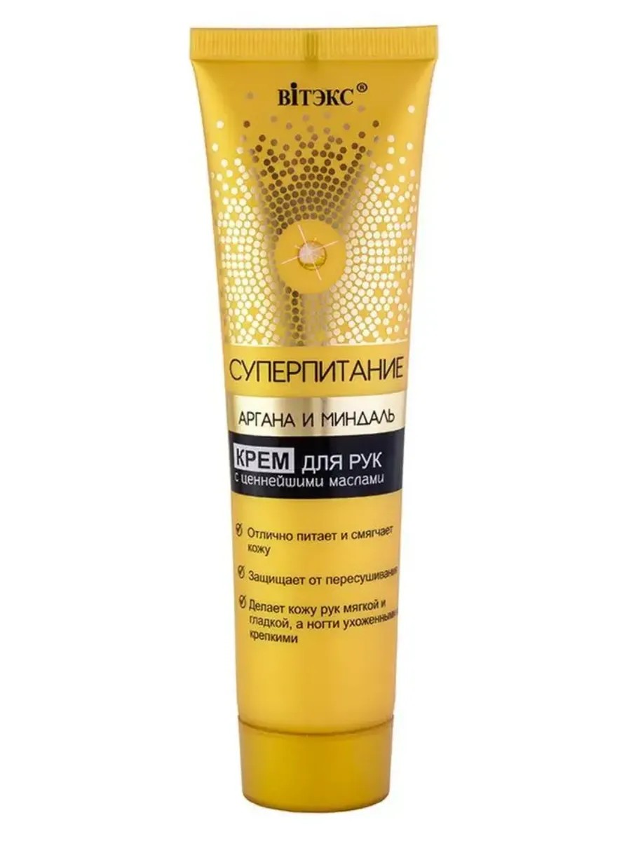 Крем для рук "Суперпитание" от белорусского бренда Витекс - это незаменимый помощник для поддержания красоты и здоровья ваших рук. Питательный крем, разработанный специально для всех типов кожи, в том числе для сухой и чувствительной, станет идеальным решением для ежедневного ухода за руками. Уходовая косметика обогащена ценными маслами, такими как кокосовое, арганы, миндаля и пшеницы, которые глубоко питают и увлажняют кожу, делая ее мягкой и шелковистой. Крем для рук с ценнейшими маслами не только интенсивно увлажняет, но и восстанавливает поврежденную кожу, защищая ее от негативного воздействия окружающей среды. Благодаря легкой текстуре, крем быстро впитывается, не оставляя жирных следов, что позволяет использовать его в любое время суток. Универсальный крем для рук парфюмированный обеспечивая коже постоянное увлажнение и питание. Белорусская косметика линии "Суперпитание" от Vitex - это идеальное сочетание эффективности и приятного аромата, который окутает ваши руки утонченным парфюмом. Уход за руками - это не просто прихоть, а необходимость, и крем для рук увлажняющий станет вашим верным помощником в этом деле.