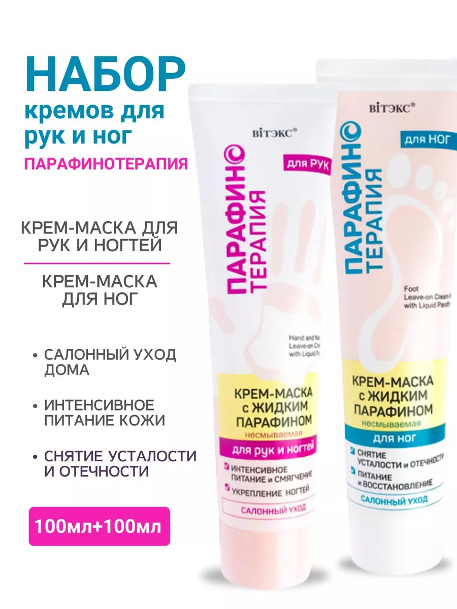 Набор Крем-маска с жидким парафином для рук и ногтей несмываемая + Крем-маска с жидким парафином для ног несмываемая.