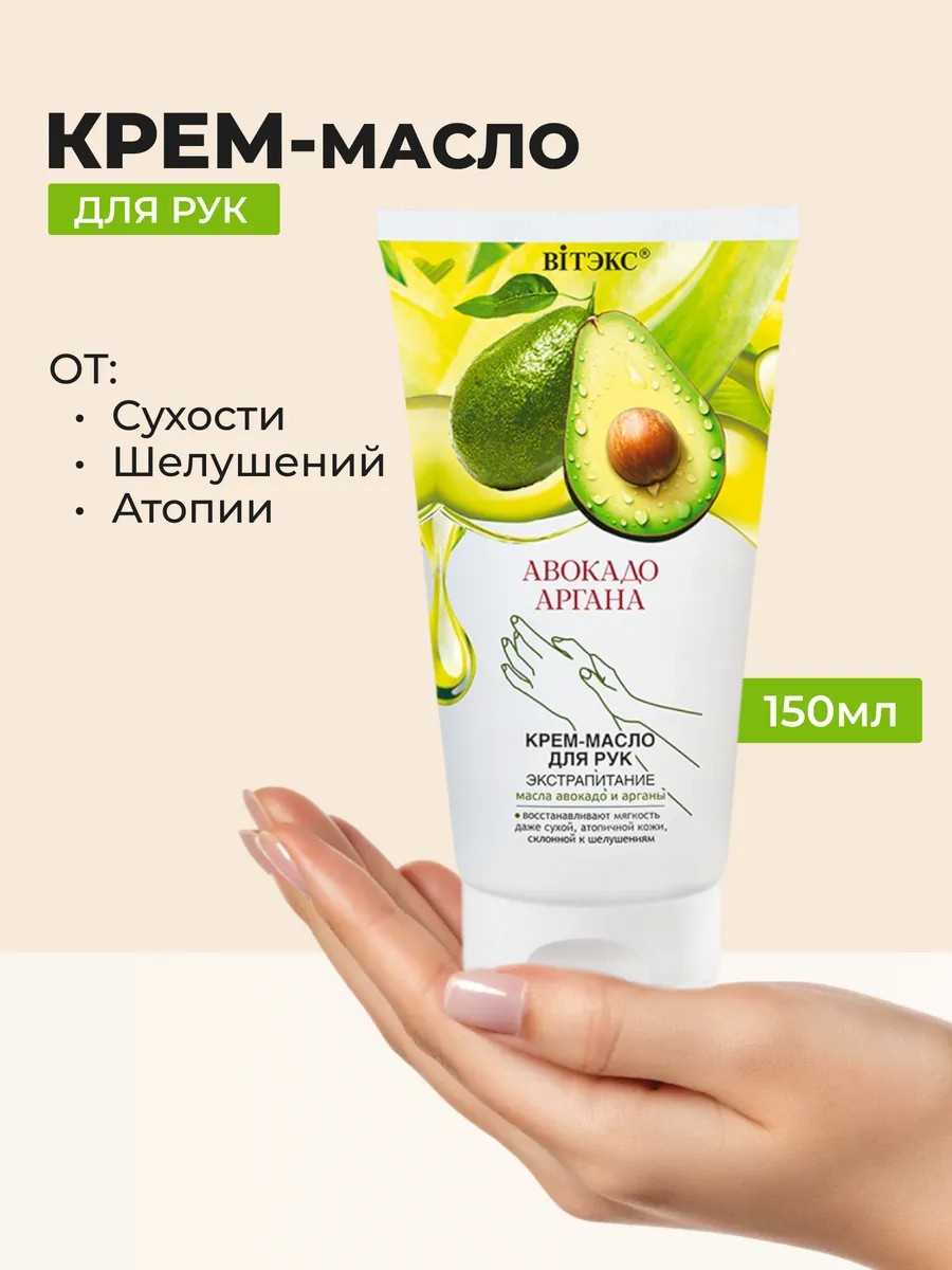 Avocado & Argan Hand Cream-Butter: Extra Nourishing. Indications: - Atopic skin - Dry, rough, calloused skin - Prone to flaking and irritation. This active hand cream melts upon application, turning into an extra-nourishing oil that saturates the epidermis with the essential nutrients needed by dry and atopic skin. Avocado, argan, and coconut oils deeply nourish cells with vitamins, antioxidants, and amino acids, reducing skin reactivity and susceptibility to irritation and redness, leaving skin soft and smooth. Hyaluronic acid and urea intensely and deeply moisturize, protect against dehydration, and prevent cracking. Vitamin E and allantoin provide instant comfort, eliminating dryness and flaking, and restoring softness and silkiness. Result: nourished, moisturized, soft, smooth skin.