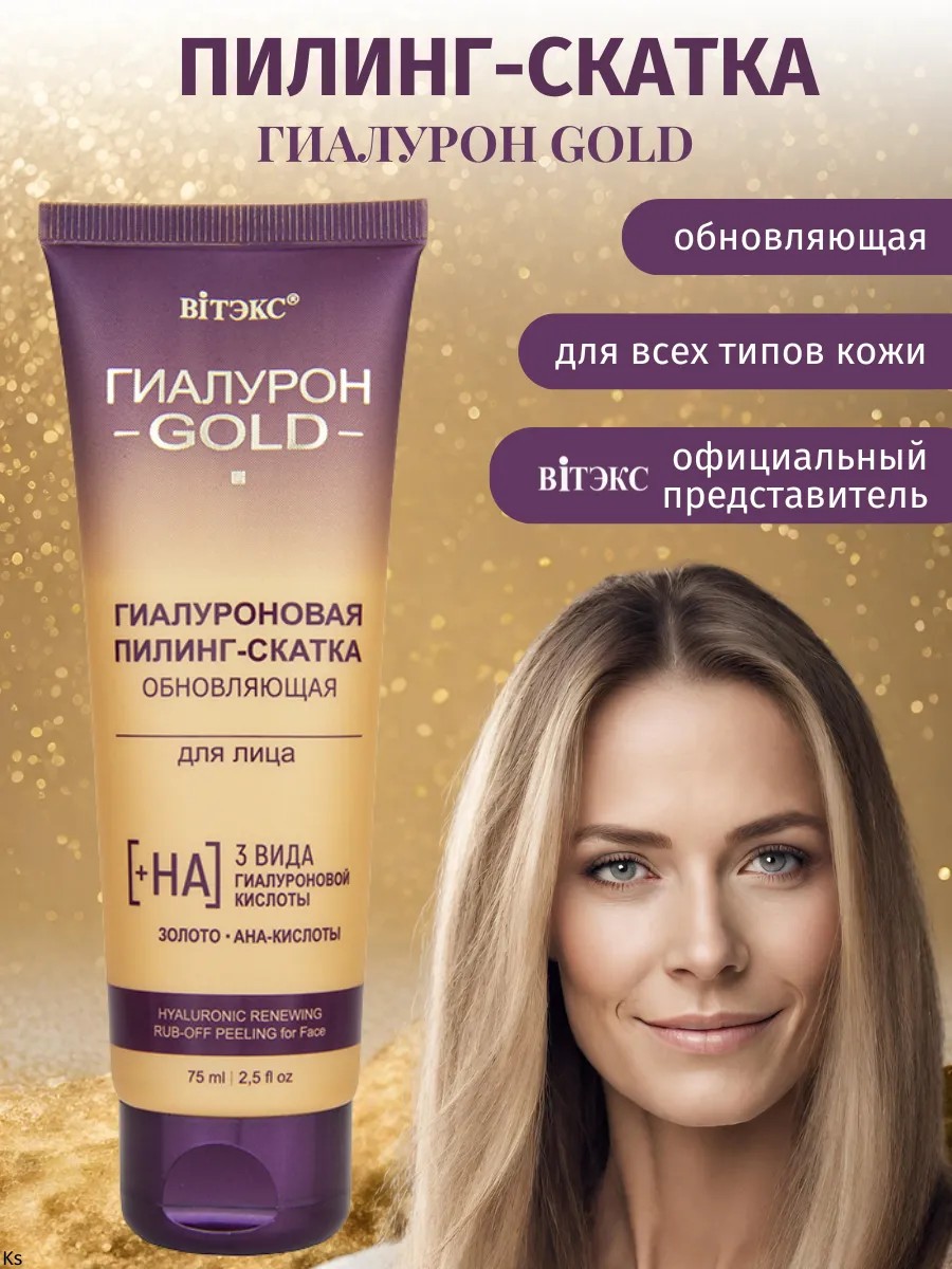 Гиалурон GOLD Гиалуроновая пилинг-скатка обновляющая для лица. Очень нежная к коже и при этом эффективная пилинг-скатка мягко скатывается и превосходно очищает эпидермис от загрязнений, ороговевших клеток и токсинов, открывая чистую, обновленную кожу, которая сияет свежестью и молодостью.