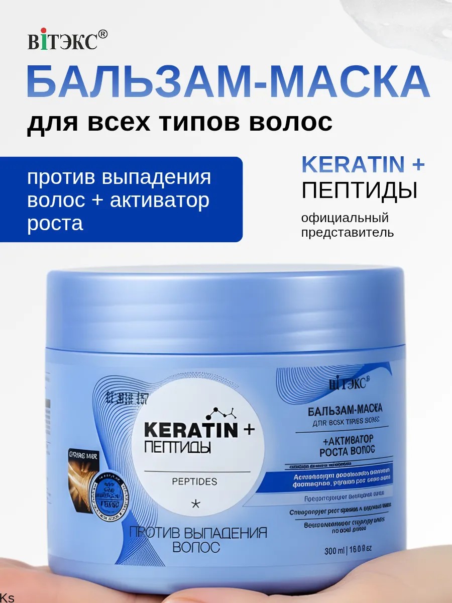 Keratin + Пептиды Бальзам-Маска для всех типов волос против выпадения волос от белорусского бренда косметики Витэкс. Бальзам для волос питает и укрепляет волосяные луковицы, восстанавливает структуру волос по всей длине. Стимулирует рост крепких и здоровых волос, предотвращая их выпадение.