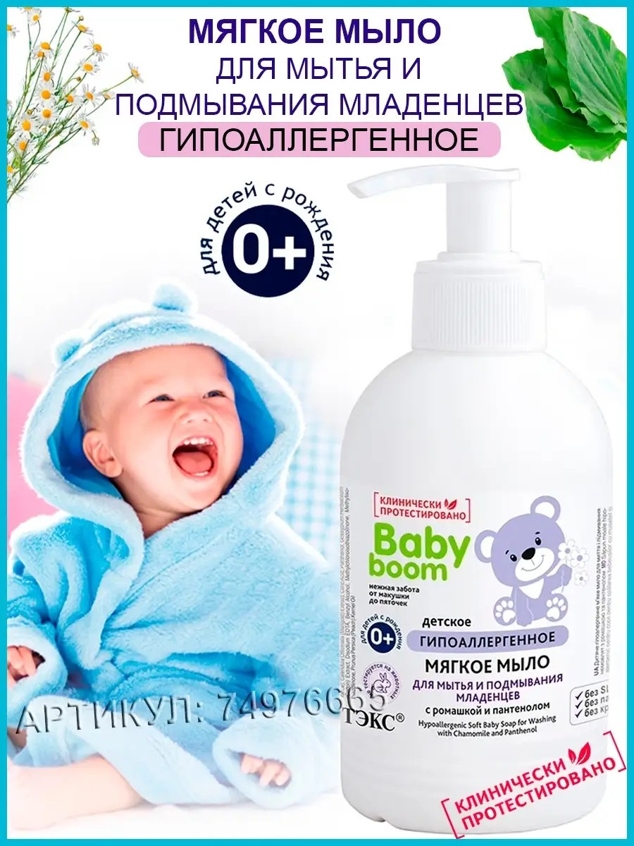 Ваш любимый малыш нуждается в нежности, ласке и правильном уходе, поэтому мы стремимся подарить ему лучшее, что даёт природа и современная наука. В научном центре компании ВИТЭКС специально для детей с рождения была создана линия гипоаллергенной косметики BABY BOOM. При создании были соблюдены самые строгие требования, которые предъявляют педиатры, ученые и заботливые родители к детской косметике. Мягкое мыло для детей от ВИТЭКС идеально подходит для ежедневной гигиены детей с первых дней жизни. Ультрамягкие очищающие компоненты образуют нежную кремовую пену, которая очень бережно очищает нежную кожу младенцев, смягчает ее, не пересушивает и не раздражает слизистые, что очень важно при частой смене подгузника. Ромашка оказывает противовоспалительное, успокаивающее и дезинфицирующее действие. обладает мощнейшими восстанавливающими свойствами, быстро снимает раздражение и покраснение кожи, помогает предотвратить появление пеленочного дерматита. Белорусская косметика.