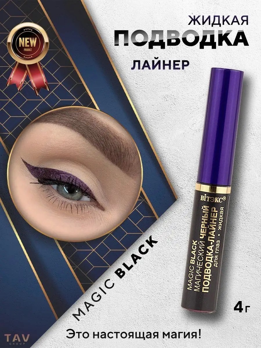 MAGIC BLACK LIQUID EYE LINER Magic Black - It's pure magic! An incredibly soft shade – an exquisite composition of deep black, skillfully blended with dark purple, gives your eyes special depth and a magical appeal! Benefits: rich, deep shade; excellent hold; very high resistance to moisture; does not smudge; does not crack; does not smear or flake; dries quickly; paraben-free. Thanks to the convenient brush and ultra-smooth gel texture, you can easily draw perfect arrows of any shape and width. The modern formula allows you to maintain luxurious, rich color all day long.