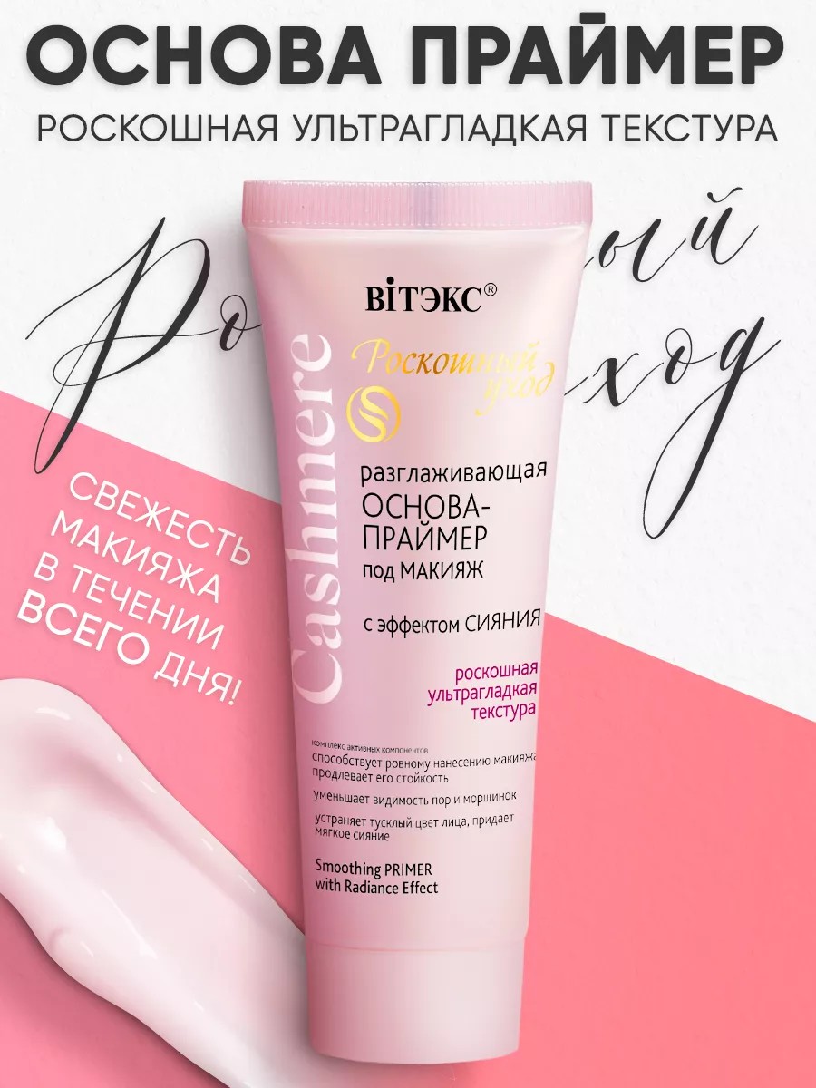 In addition, the base primer contains a rich cocktail of nourishing, moisturizing, smoothing and anti-aging substances (rejuvenating cells of Alpine edelweiss, cashmere proteins, pink magnolia extract), which form a weightless caring layer under makeup, helping to maintain the perfection of the skin.