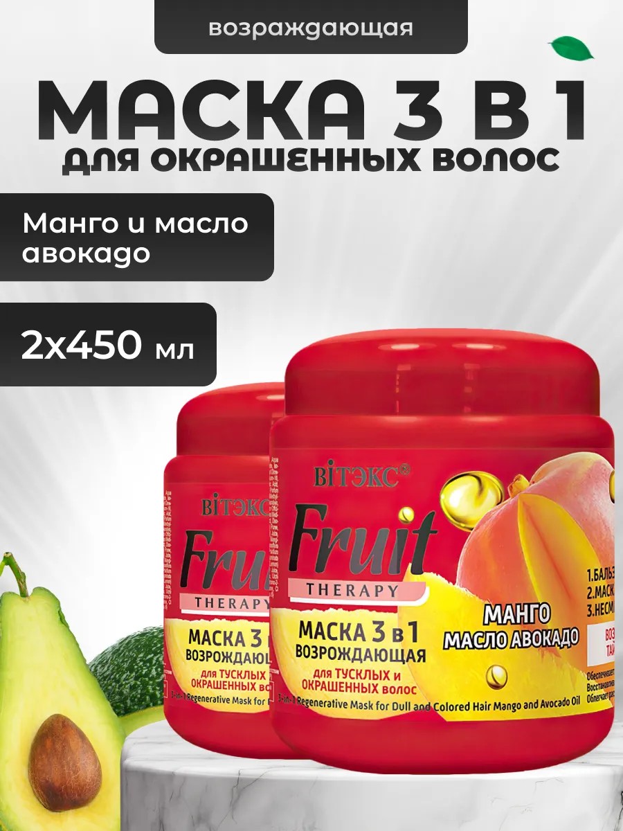 Витэкс Маска для окрашенных волос 3 в 1 Fruit Therapy 2шт по 450 мл