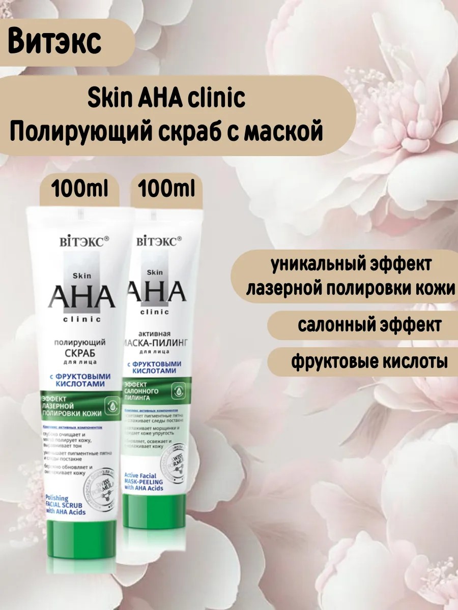 skin AHA clinic Активная МАСКА-ПИЛИНГ и Полирующий СКРАБ для лица.