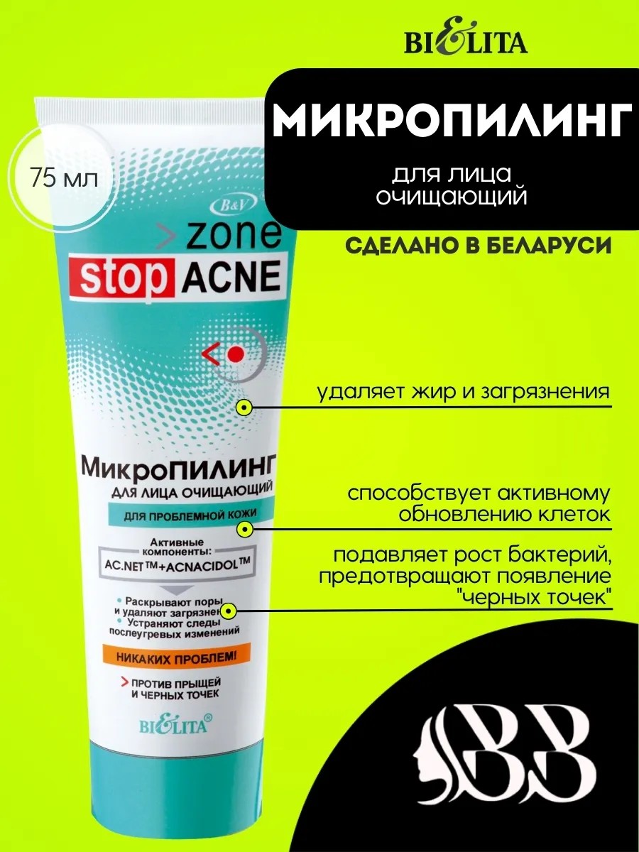 Подарите своей коже мгновенное обновление и сияние с очищающим микропилингом Zone Stop ACNE от Белита.