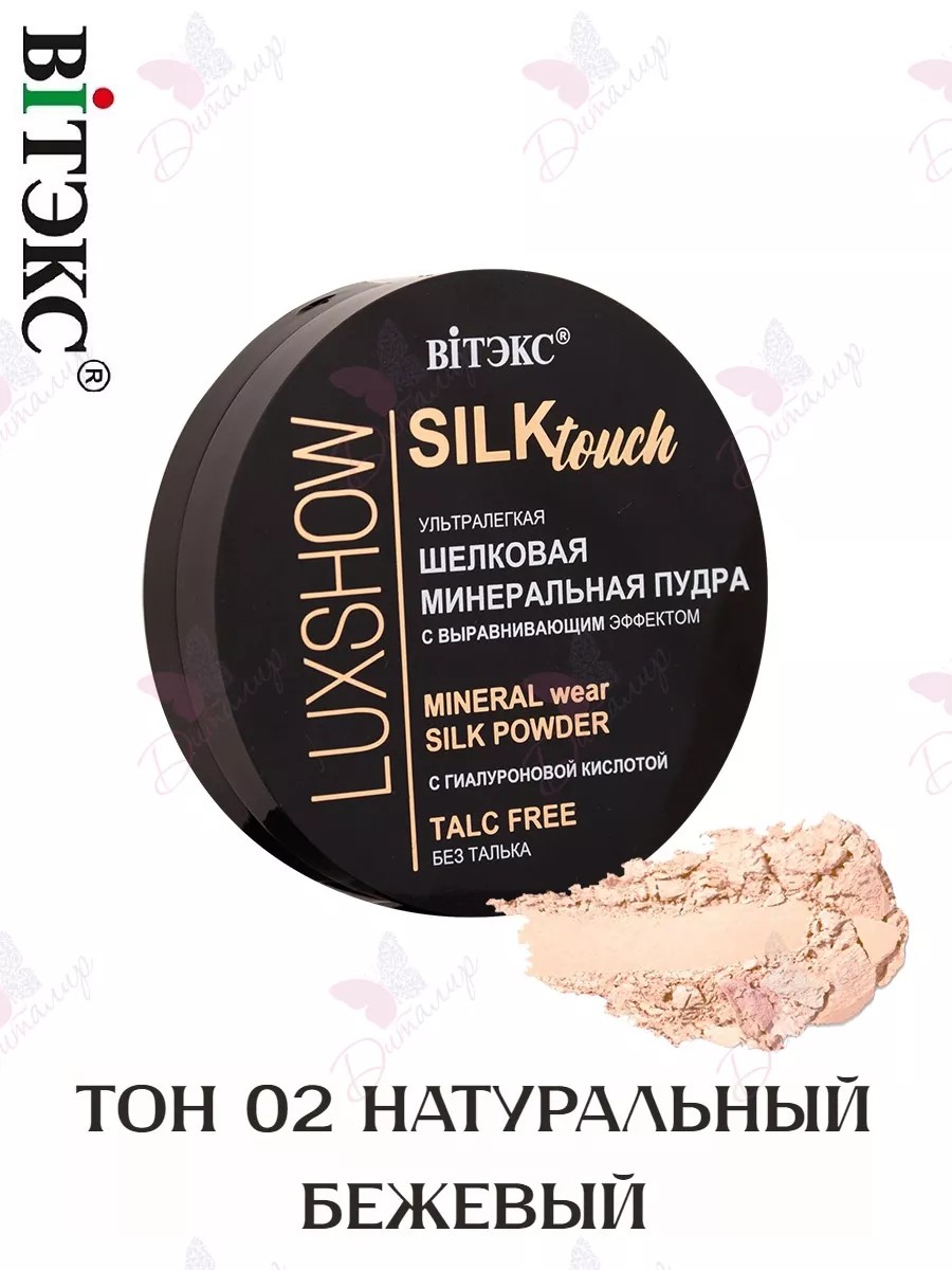 LUXSHOW Silktouch Шелковая Минеральная Пудра для лица ультралегкая без талька. Роскошная минеральная пудра премиального качества превосходно выравнивает тон, маскирует поры и несовершенства, оставаясь совершенно незаметной на коже. Оптимальная плотность покрытия позволяет использовать пудру как на «голую» кожу для создания ровного, гладкого, шелковистого покрытия, так и для закрепления тонального средства. Ультратонкая текстура легко и равномерно наносится, обеспечивает эффект свежей, отдохнувшей, холеной, при этом максимально естественной кожи, что делает пудру идеальной для повседневного макияжа, профессиональных фотосессий, сценического макияжа. Специальные минеральные частицы эффективно поглощают излишки кожного себума, моментально устраняют жирный блеск и надолго матируют кожу, что особенно важно для продления стойкости макияжа в жаркую погоду, для обладательниц кожи, склонной к жирности, а также тех, кто активно занимается спортом. Не сушит кожу. Без талька, не закупоривает поры. Без отдушки. Подходит для всех типов кожи. Содержит масло кокоса, гиалуроновую кислоту и экстракт магнолии, которые питают, смягчают и разглаживают кожу, защищают ее от потери влаги, оказывают антивозрастное действие. Применение: равномерно нанесите на кожу с помощью спонжа или кисточки.