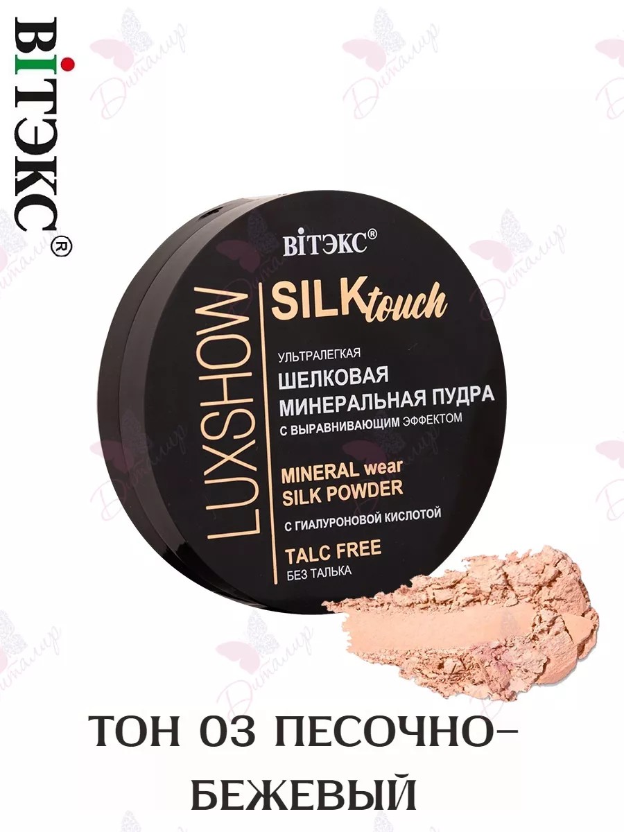 LUXSHOW Silktouch Шелковая Минеральная Пудра для лица ультралегкая без талька. Роскошная минеральная пудра премиального качества превосходно выравнивает тон, маскирует поры и несовершенства, оставаясь совершенно незаметной на коже. Оптимальная плотность покрытия позволяет использовать пудру как на «голую» кожу для создания ровного, гладкого, шелковистого покрытия, так и для закрепления тонального средства. Ультратонкая текстура легко и равномерно наносится, обеспечивает эффект свежей, отдохнувшей, холеной, при этом максимально естественной кожи, что делает пудру идеальной для повседневного макияжа, профессиональных фотосессий, сценического макияжа. Специальные минеральные частицы эффективно поглощают излишки кожного себума, моментально устраняют жирный блеск и надолго матируют кожу, что особенно важно для продления стойкости макияжа в жаркую погоду, для обладательниц кожи, склонной к жирности, а также тех, кто активно занимается спортом. Не сушит кожу. Без талька, не закупоривает поры. Без отдушки. Подходит для всех типов кожи. Содержит масло кокоса, гиалуроновую кислоту и экстракт магнолии, которые питают, смягчают и разглаживают кожу, защищают ее от потери влаги, оказывают антивозрастное действие. Применение: равномерно нанесите на кожу с помощью спонжа или кисточки.