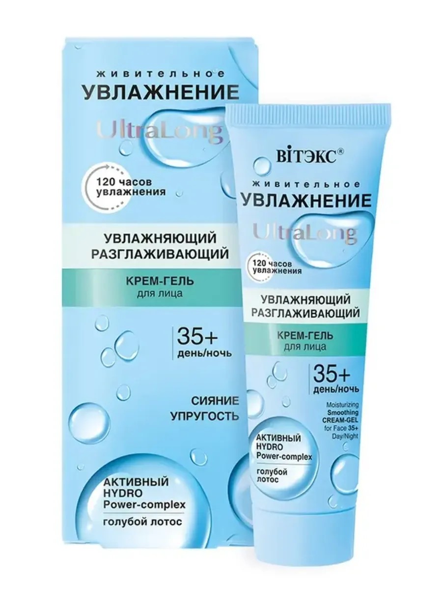 Увлажняющий разглаживающий крем-гель для лица 35+ день-ночь «Увлажнение UltraLong» от белорусского бренда Витекс — это идеальное решение для комплексного ухода за кожей лица. Крем для лица увлажняющий и питательный разработан с учетом потребностей зрелой кожи, обеспечивая ей необходимый уход и защиту. Уходовая косметика для лица благодаря большому проценту активных компонентов в составе достигается быстрый и заметный результат: кожа напитывается влагой буквально на глазах, становится более упругой, разглаживается, исчезают морщинки, вызванные обезвоживанием. Крем от морщин для лица глубоко увлажняет и питает кожу, благодаря содержанию глицерина и масла семян макадамии, которые способствуют удержанию влаги и улучшению текстуры кожи. Антивозрастной уход за лицом содержит экстракты лотоса и красных водорослей, которые помогают уменьшить видимость морщин, повышают упругость и придают коже сияние. Крем для лица обладает легкой текстурой, которая быстро впитывается, снимая признаки усталости и придавая коже свежий вид. Крем для лица антивозрастной подходит для любого типа кожи, обеспечивая бережный уход и защиту. Омолаживающий крем для лица с гиалуронатом натрия помогает поддерживать уровень увлажненности кожи, способствуя её омоложению и улучшению общего состояния. Белорусская косметика линии «Увлажнение UltraLong» - это ювелирный симбиоз технологий и компонентов, поэтому она идеально подходит для ухода за обезвоженной, уставшей кожей, а также за чувствительной кожей, склонной к стянутости и покраснениям. Увлажняющий крем для лица от Vitex станет незаменимым помощником в вашем уходе за лицом, обеспечивая антивозрастной уход и заботясь о красоте вашей кожи на протяжении всего дня и ночи. Позвольте себе насладиться моментами ухода, даря своей коже здоровье, упругость и сияние!