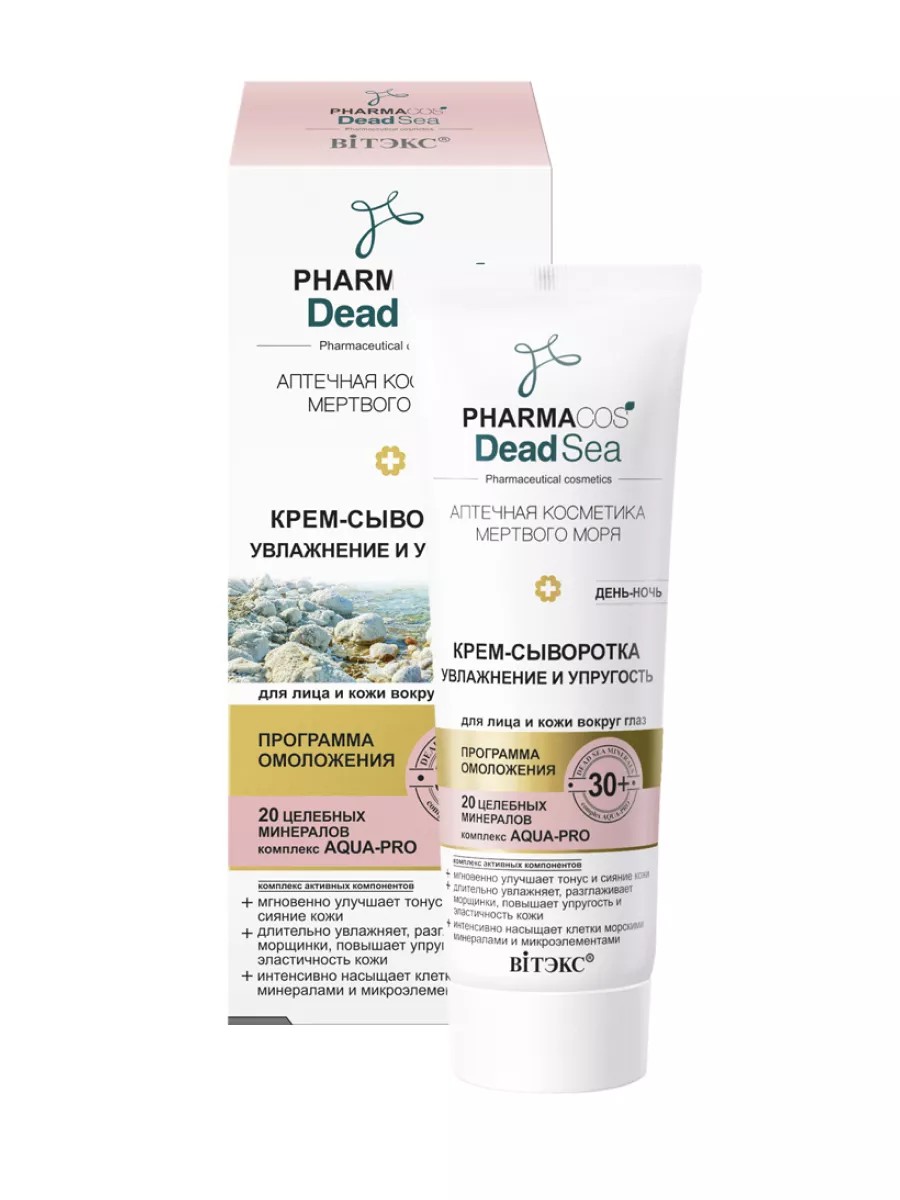 Крем-сыворотка 30+ «Увлажнение и упругость» день-ночь для лица и кожи вокруг глаз PHARMACOS DEAD SEA.