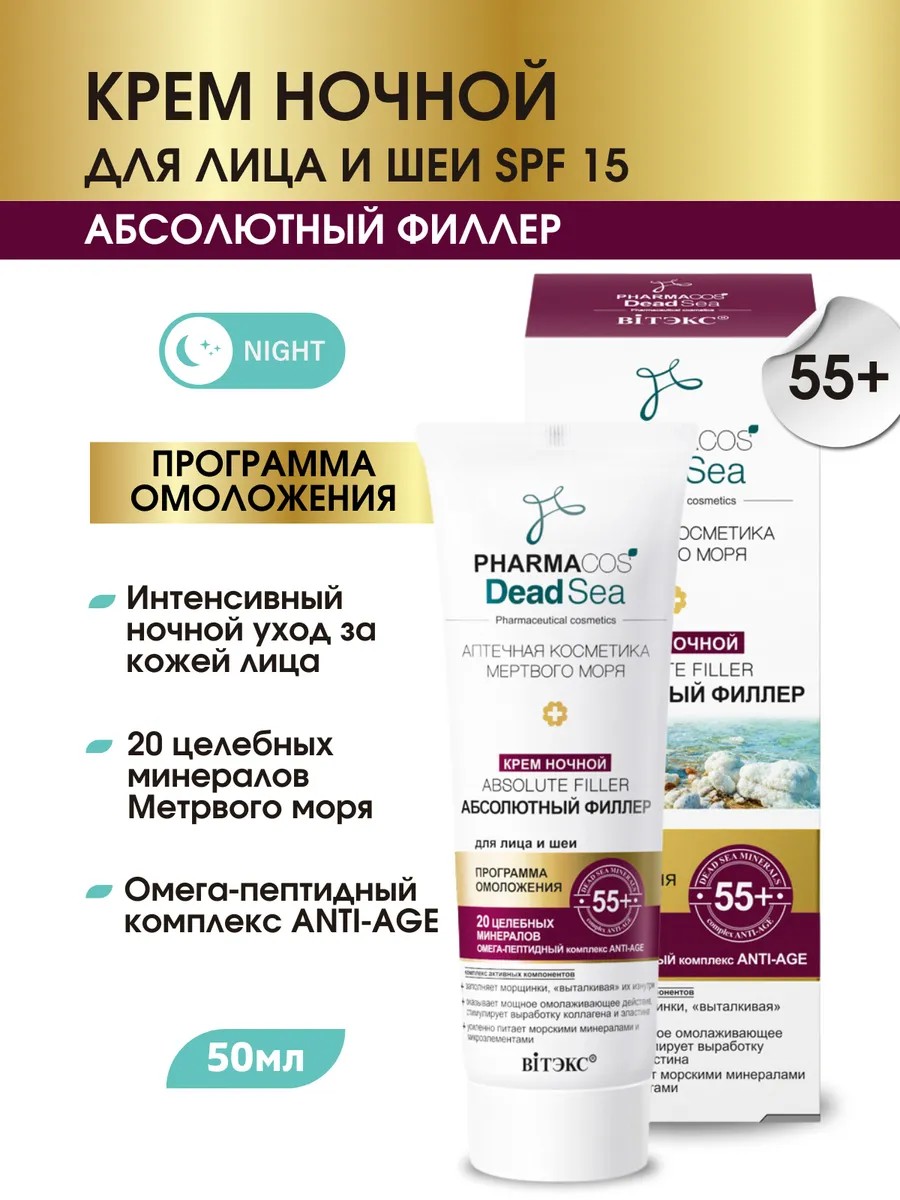 Ночной крем для лица Витэкс с пептидами омоложения 55+ — это интенсивное средство, разработанное специально для зрелой кожи. Формула крема, обогащенная омега-пептидным комплексом, работает в ночное время, когда кожа наиболее восприимчива к регенерации. Крем глубоко питает, разглаживает морщины и повышает упругость кожи, возвращая ей тонус и сияние. Легкая текстура крема быстро впитывается, не оставляя жирной пленки, что делает его идеальным для ежедневного использования. Регулярное применение крема Витэкс поможет вам сохранить молодость и красоту кожи, независимо от возраста.