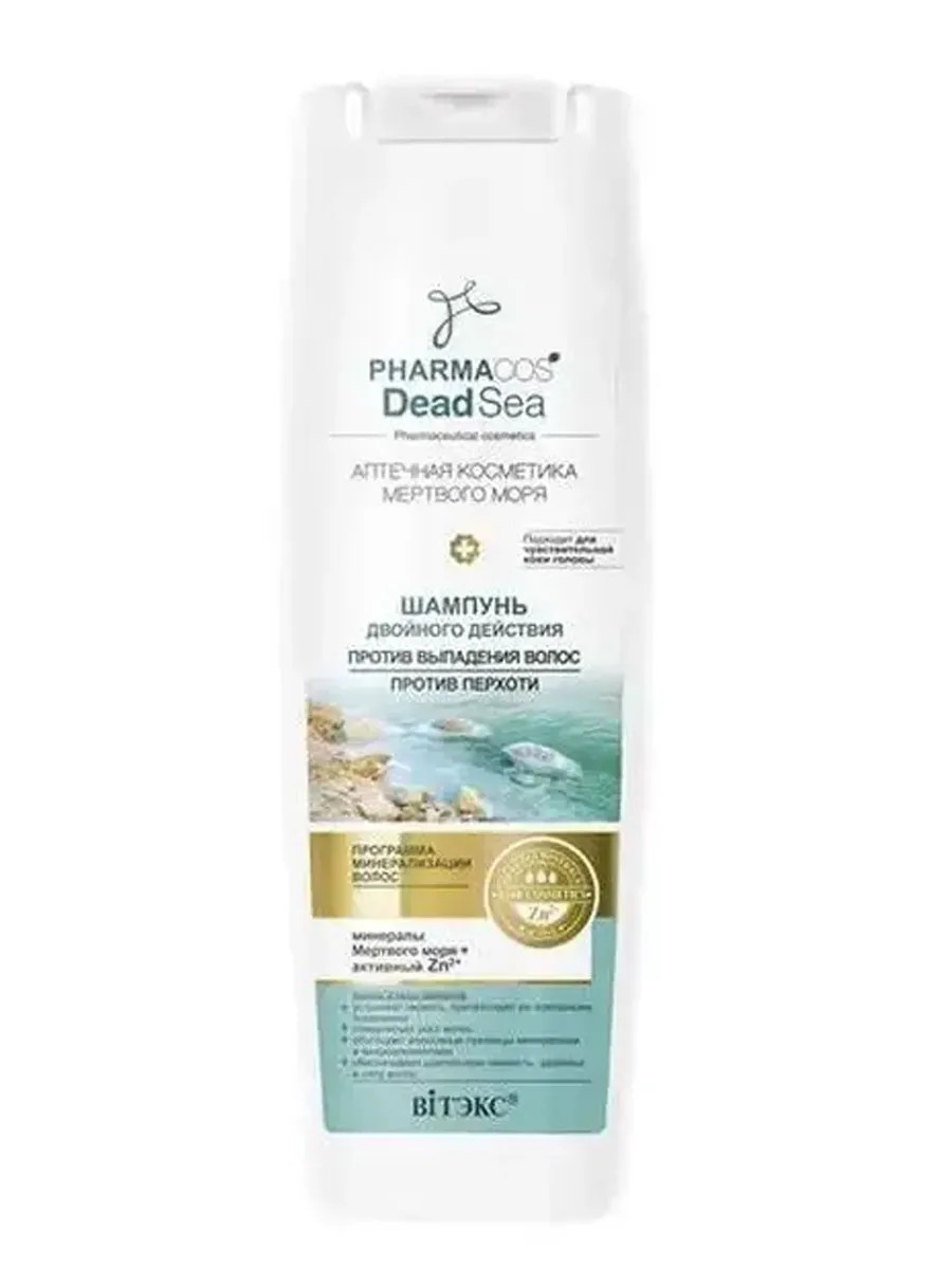 подходит для чувствительной кожи головы минералы Мертвого моря + активный Zn2+- устраняет перхоть, препятствует ее повторному появлению,- стимулирует рост волос,- обогащает волосяные луковицы минералами и микроэлементами,- обеспечивает длительную свежесть, здоровье и силу волос.Шампунь двойного действия деликатно очищает волосы и, благодаря синергетическому действию целительной эссенции из 20 минералов Мертвого моря, запатентованного комплекса Dynagen и пиритионата цинка, эффективно помогает направленному решению двух проблем: перхоть и выпадение волос.20 целебных минералов Мертвого моря (включая магний, кальций, серу, бромид, йод, натрий, цинк и калий) активно оздоравливают волосы и кожу головы, позволяя надолго избавиться от перхоти. Улучшают микроциркуляцию у корней волос, обеспечивают усиленное питание фолликулов, препятствуют выпадению волос и стимулируют их рост.Пиритионат цинка обладает выраженными противогрибковыми свойствами, благодаря чему эффективно борется перхотью, препятствует ее повторному появлению, снимает зуд и раздражение, нормализует работу сальных желез, надолго придает ощущение свежести и чистоты.Натуральный запатентованный комплекс Dynagenтм укрепляет волосяные луковицы, активизирует рост волос, улучшает их структуру, делает волосы сильными, упругими и эластичными от корней до кончиков. Аллантоин оказывает выраженный смягчающий и увлажняющий эффект. Салициловая кислота интенсивно отшелушивает отмершие клетки кожи. Оказывает антисептическое действие. Натуральный кондиционер для волос снимает статический заряд, улучшает расчесываемость влажных и сухих волос, уменьшает спутывание волос.Результат: эффективное устранение перхоти, предотвращение выпадения волос, усиление их роста.