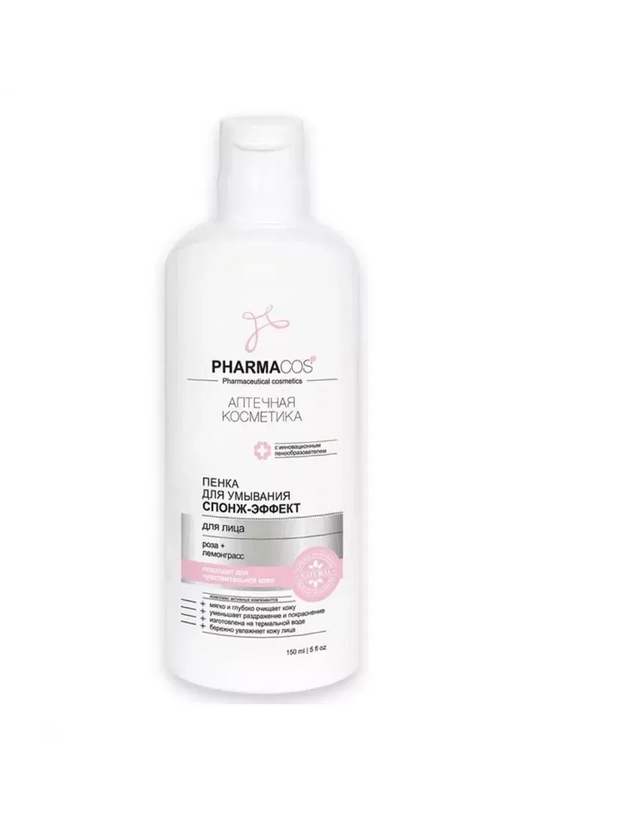 Vitex, Pharmacos Sponge-Effect Facial Cleansing Foam, 150 ml, 1 pc. This cleansing foam, made with thermal water, gently removes impurities and deeply cleanses all skin types. It gently moisturizes the skin, leaving it feeling fresh and comfortable. As a result, the skin becomes soft and velvety. Lemongrass (Cymbopogon) in the cleansing foam eliminates oily shine. Rosehip (Rosa Damascena) leaves the skin feeling fresh, firm, and elastic, evens out complexion. Chamomile (Chamomilla Recutita) extract relieves irritation and redness, while D-panthenol (Panthenol) has a regenerating and anti-inflammatory effect. Thermal water contains a large number of minerals and microelements, soothes, restores, and enhances the skin's protective properties. Directions: Apply the foam to a damp face and neck using circular motions, then rinse with water. Can be used morning and evening.