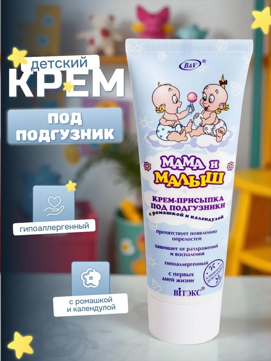 Крем-присыпка под подгузники с ромашкой и календулой. Клинически доказано: гипоаллергенный. Крем-присыпка — специальное средство для защиты и ежедневного ухода за кожей малыша при смене подгузника, а также для надежной защиты особенно чувствительных участков кожи, таких как сгибы локтей и коленок, подмышечных впадинок, шейки от покраснений, раздражений и натираний. Экстракты ромашки и календулы оказывают противовоспалительное и успокаивающее действие, предохраняют от раздражений, покраснений и опрелостей, смягчают и мягко ухаживают за чувствительной кожей ребенка с первых дней его жизни.