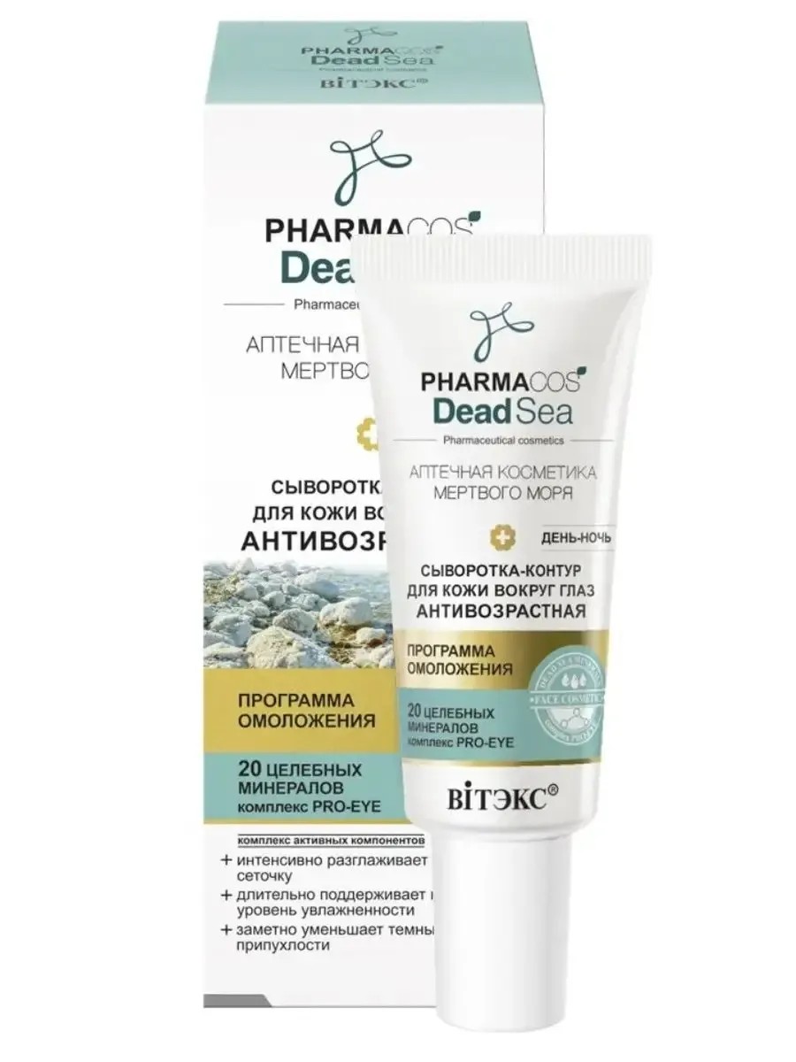 Витэкс Pharmacos Dead Sea, Сыворотка-контур антивозрастная день-ночь для кожи вокруг глаз 20 мл 1 шт. Сыворотка-контур с уникальной технологией глубокой дермальной доставки активных компонентов позволяет эффективно корректировать признаки увядания кожи и противостоять появлению возрастных изменений. Рекомендации по применению: Нанесите небольшое количество сыворотки утром и/или вечером лёгкими массирующими движениями на очищенную кожу вокруг глаз в направлении от наружного к внутреннему уголку глаз.