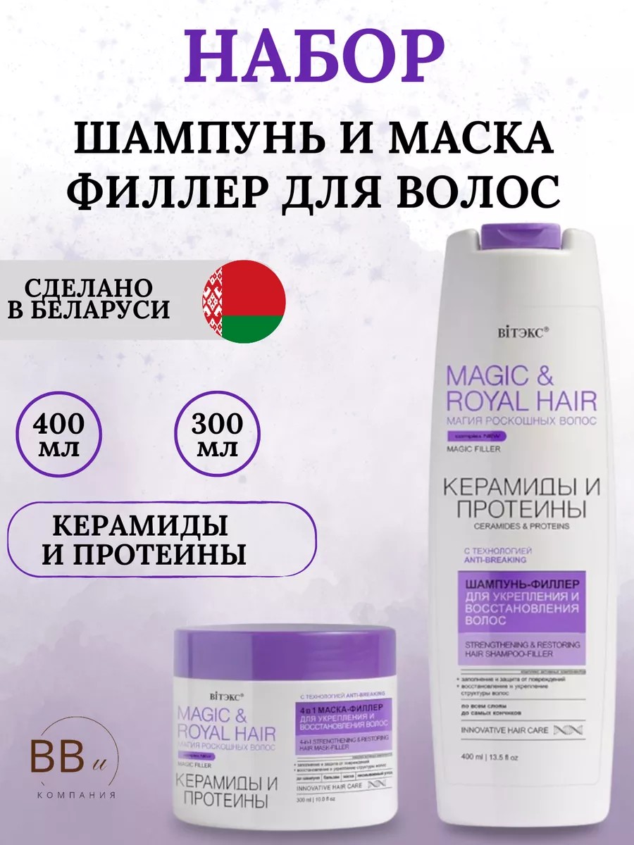 Shampoo + Conditioner Set MAGIC&ROYAL HAIR Filler shampoo is based on revolutionary technology aimed at repairing damaged areas in the hair structure and protecting against negative factors that provoke brittleness and weakening of curls.