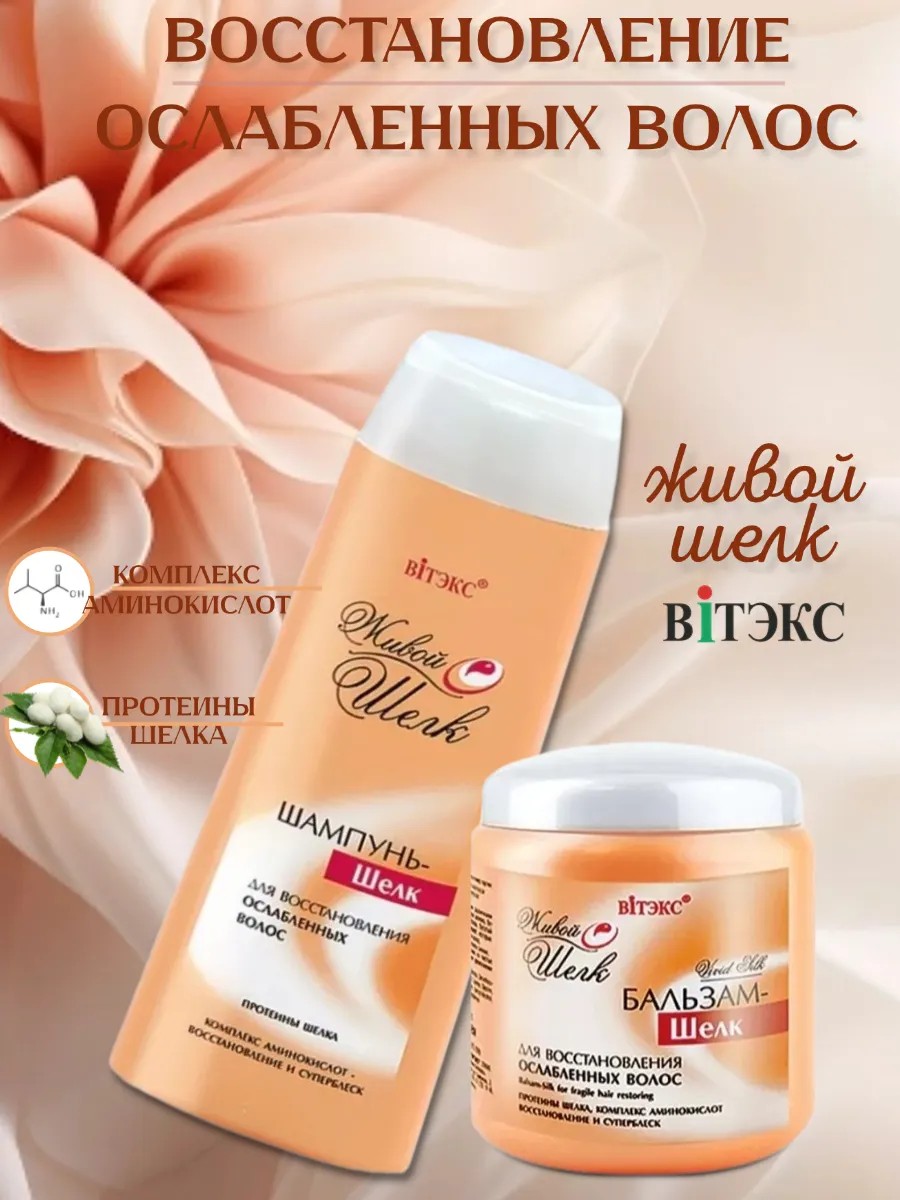 Hair care set. Belarusian cosmetics Belita-Vitex. Shampoo: Gently cleanses and nourishes dry and weakened hair. Thanks to silk proteins, the shampoo has a rapid restorative effect on damaged areas of the hair. It gives hair smoothness and a silky shine. Your hair will be full of vitality and look great again! Conditioner: Intensively cares for hair weakened by various external and internal factors (coloring, perms, stress, etc.). Thanks to silk proteins, the hair structure is restored and smoothed. Hair becomes smooth and easier to comb. Restore the beauty of your hair! Shampoo composition: water, sodium laureth sulfate, sodium chloride, lauryl sulfate TEA, lauryl glucoside, cocamidopropyl betaine, cocamide DEA, sodium laureth sulfosuccinate, lauroyl PG-trimonium chloride, sodium styrene and acrylates copolymer, perfume composition, disodium EDTA, silk amino acids, benzyl alcohol, methylchloroisothiazolinone, methylisothiazolinone, citric acid, taurine, glycine, benzyl salicylate, CI 19140, CI 16255. Balm composition: water, cetearyl alcohol, cetrimonium chloride, behentrimonium chloride, perfume composition, dimethicone, methylparaben, benzyl alcohol, methylchloroisothiazolinone, methylisothiazolinone, Silk amino acids, citric acid, propylparaben, glycine, taurine, benzyl salicylate.