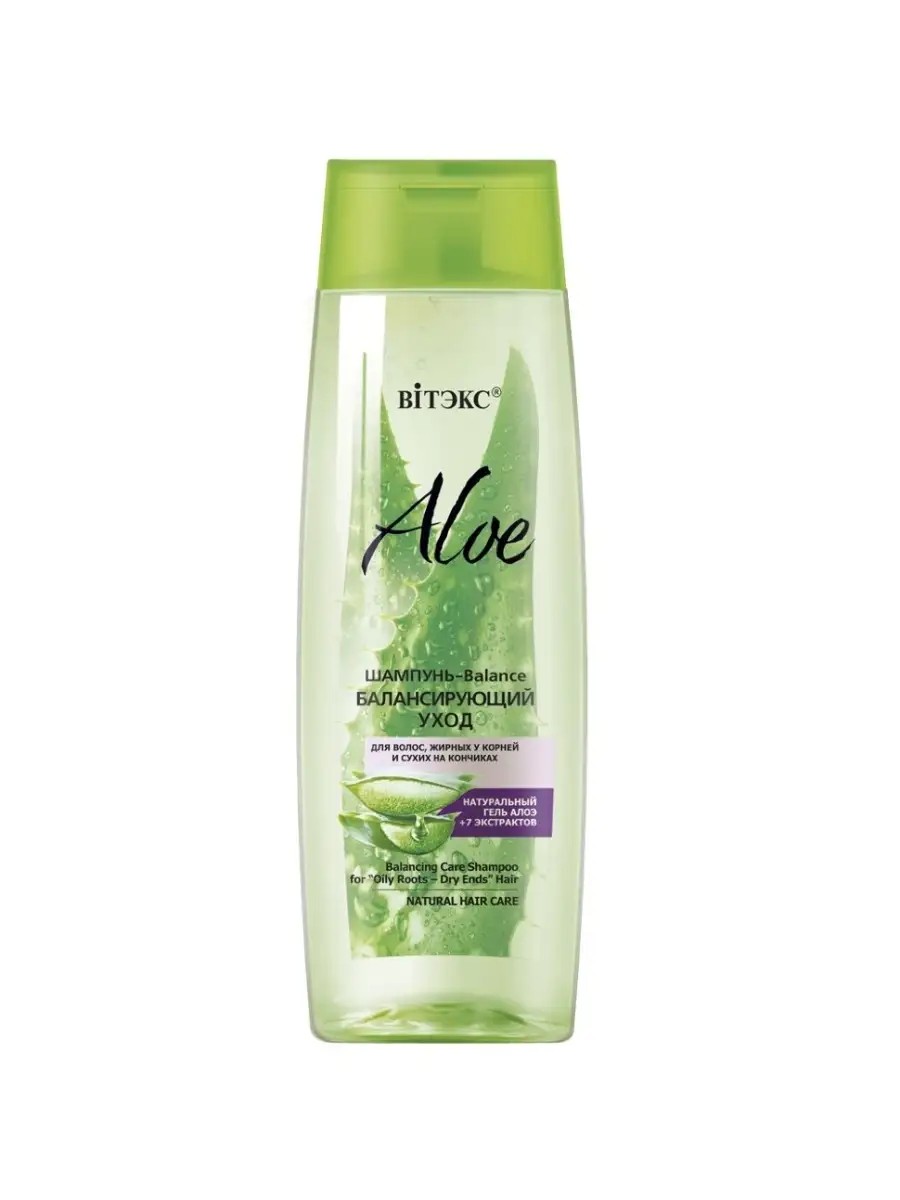 ALOE + 7 EXTRACTS Balance Shampoo. Balancing care for hair, oily at the roots and dry at the ends, 400 ml - The most natural, transparent formula of the shampoo skillfully combines the most valuable ingredients, the effectiveness of which has been proven by nature itself. Thanks to its rich composition, balance shampoo not only thoroughly, deeply, and very gently cleanses the hair and scalp without causing overdrying, but also provides exceptional balancing and moisturizing care, normalizing the functioning of the sebaceous glands and helping hair stay fresh and light longer. Active ingredients for beautiful hair: ALOE VERA GEL - a source of life-giving moisture and essential nutrients that penetrate deep into the hair structure, nourish the hair along the entire length, eliminate microdamage, give strength and elasticity, protect against breakage and split ends. 7 EXTRACTS - MAXIMUM EFFECTIVENESS:.