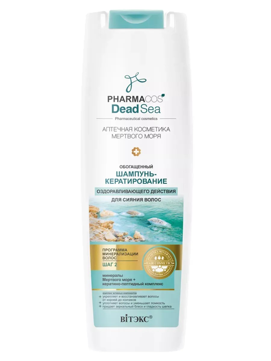 Обогащенный шампунь кератирование оздоравливающего действия для сияния волос PHARMACOS DEAD SEA – инновационное средство, позволяющее обеспечить волосам комплексный очищающий, оздоравливающий и восстанавливающий уход.