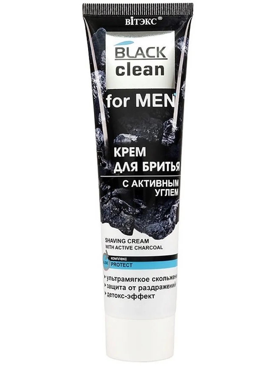 ВИТЭКС Крем для бритья с активным углем, 100 мл. Специальная формула крема разработана с учетом особенностей мужской кожи. Каскад эффективных компонентов (активный черный уголь, комплекс GlideProtect, натуральный гель алоэ вера) одновременно работает в 3 направлениях для комфортного бритья: 1.великолепно смягчает даже самую жесткую щетину, обеспечивает ультрамягкое скольжение;2.образует на коже специальный защитный слой, который предохраняет кожу от порезов, раздражений и пересушивания;3.оказывает детокс-эффект, успокаивает кожу, препятствует появлению воспалений и покраснений. Результат: быстрое, комфортное бритье и гладкая, мягкая, увлажненная кожа.